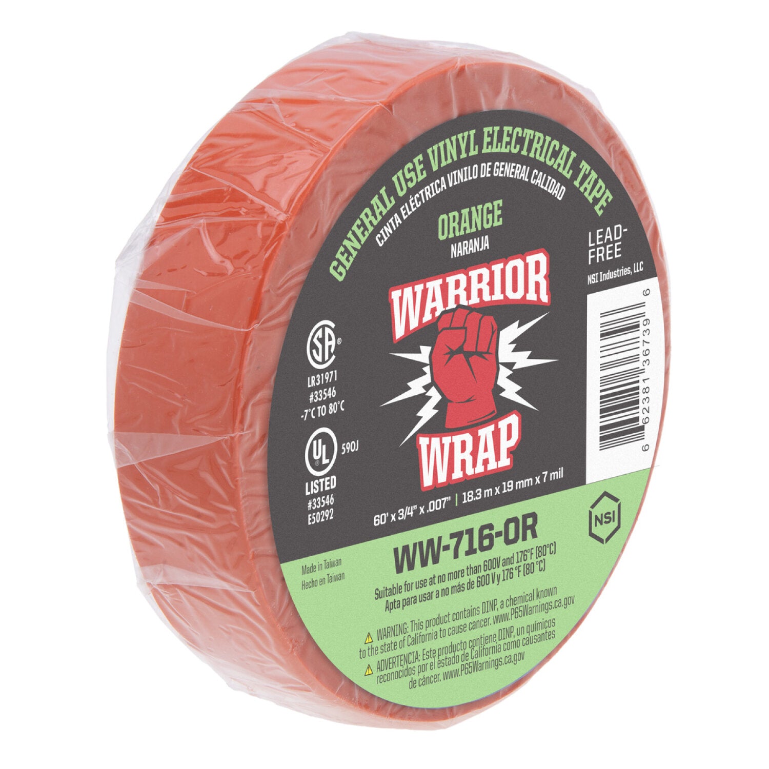 NSI WW-716-OR General Use Orange Vinyl Electrical Tape, 7mil, 60ft Long
