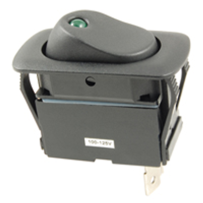 SWITCH ILLUMINATED ROCKER SPST 16A 125VAC ON-NONE-OFF GREEN LED .250 INCH QUICK CONNECT TERMINALS