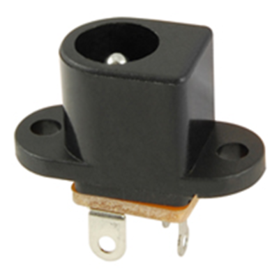 POWER JACK DC PANEL MOUNT 5.0MM X 2.1MM 24V 2AMP METAL AND POM .350 X .430 INCH MOUNTING HOLE 3 LEAD