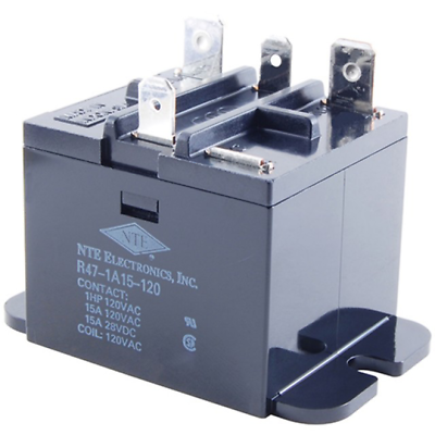 NTE Electronics R47-1D15-110 RELAY SPST-NO 15AMP 110VAC .187" COIL, .250" LOAD