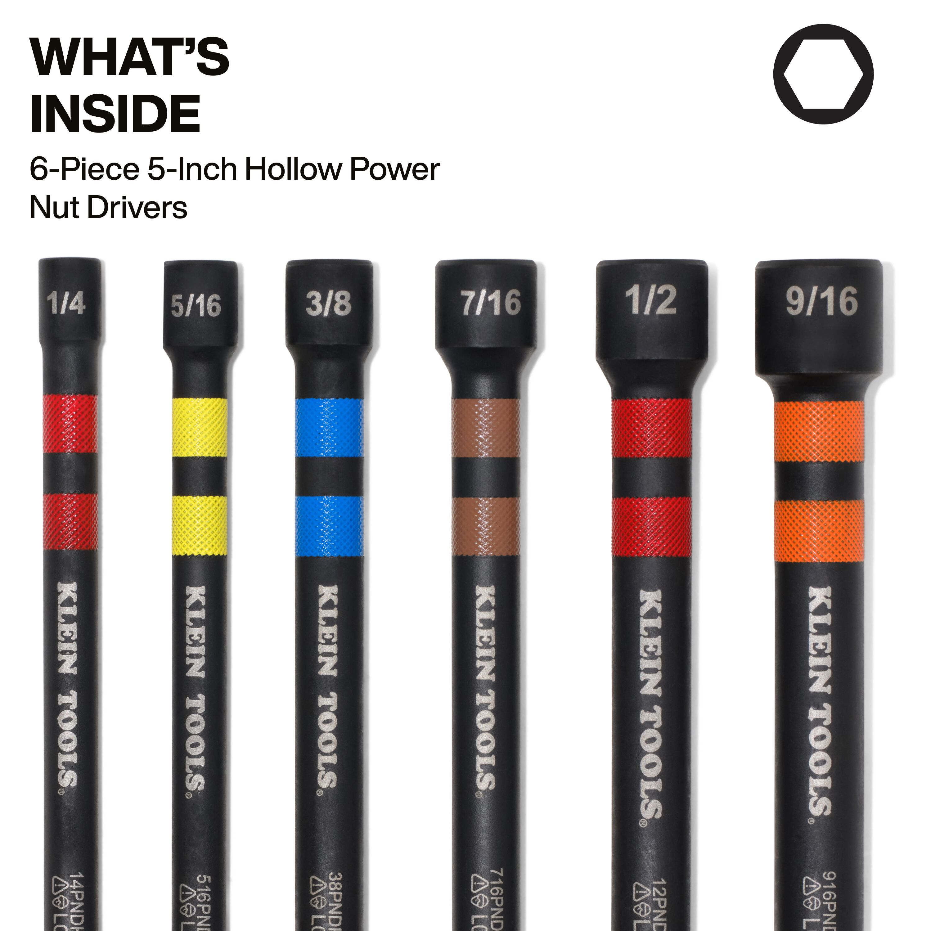 Klein Tools 32940 Magnetic Hollow Color-Coded Power Nut Drivers Set, 6 Pc.