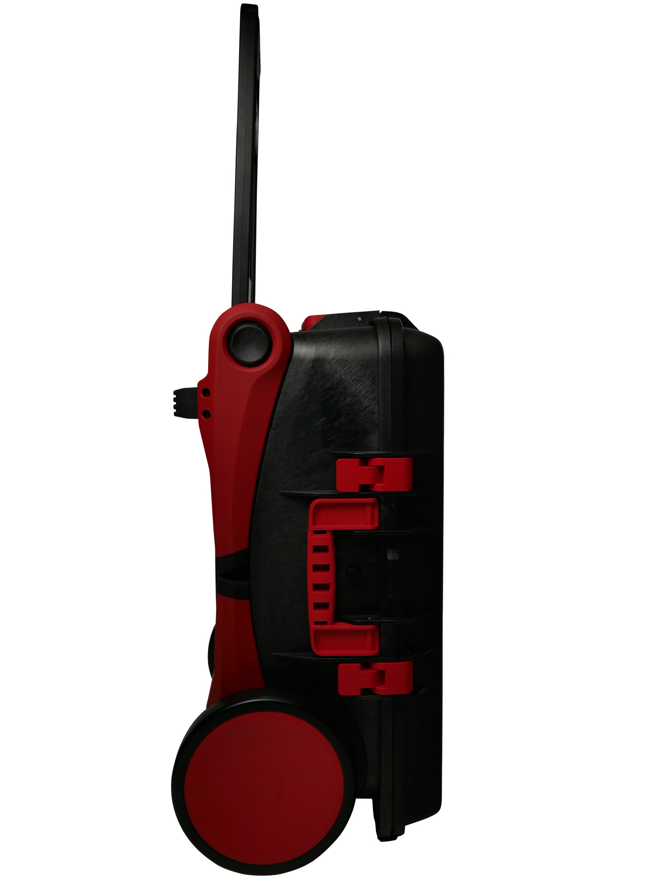 - Heavy-duty construction, all-terrain wheels, large secure storage
