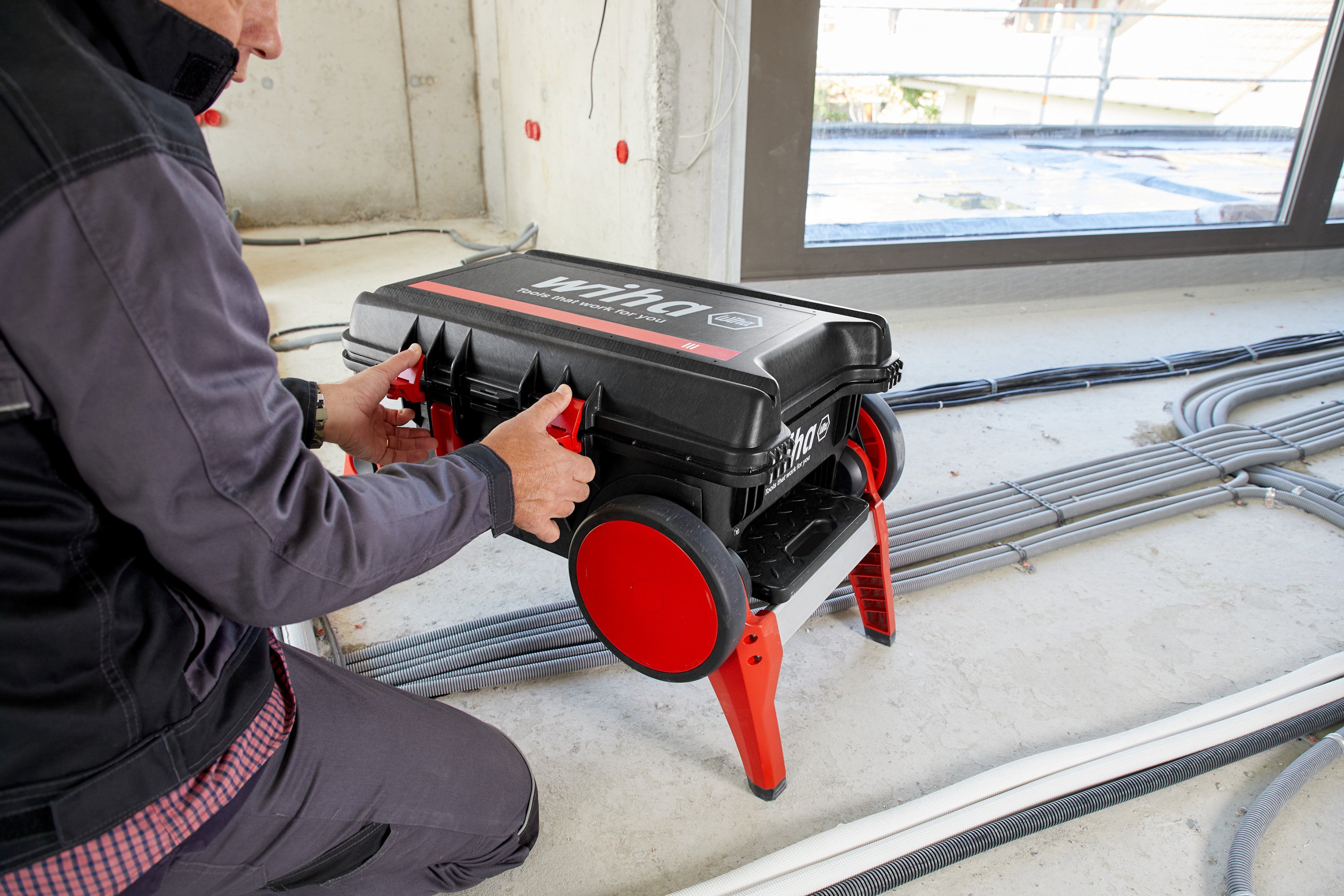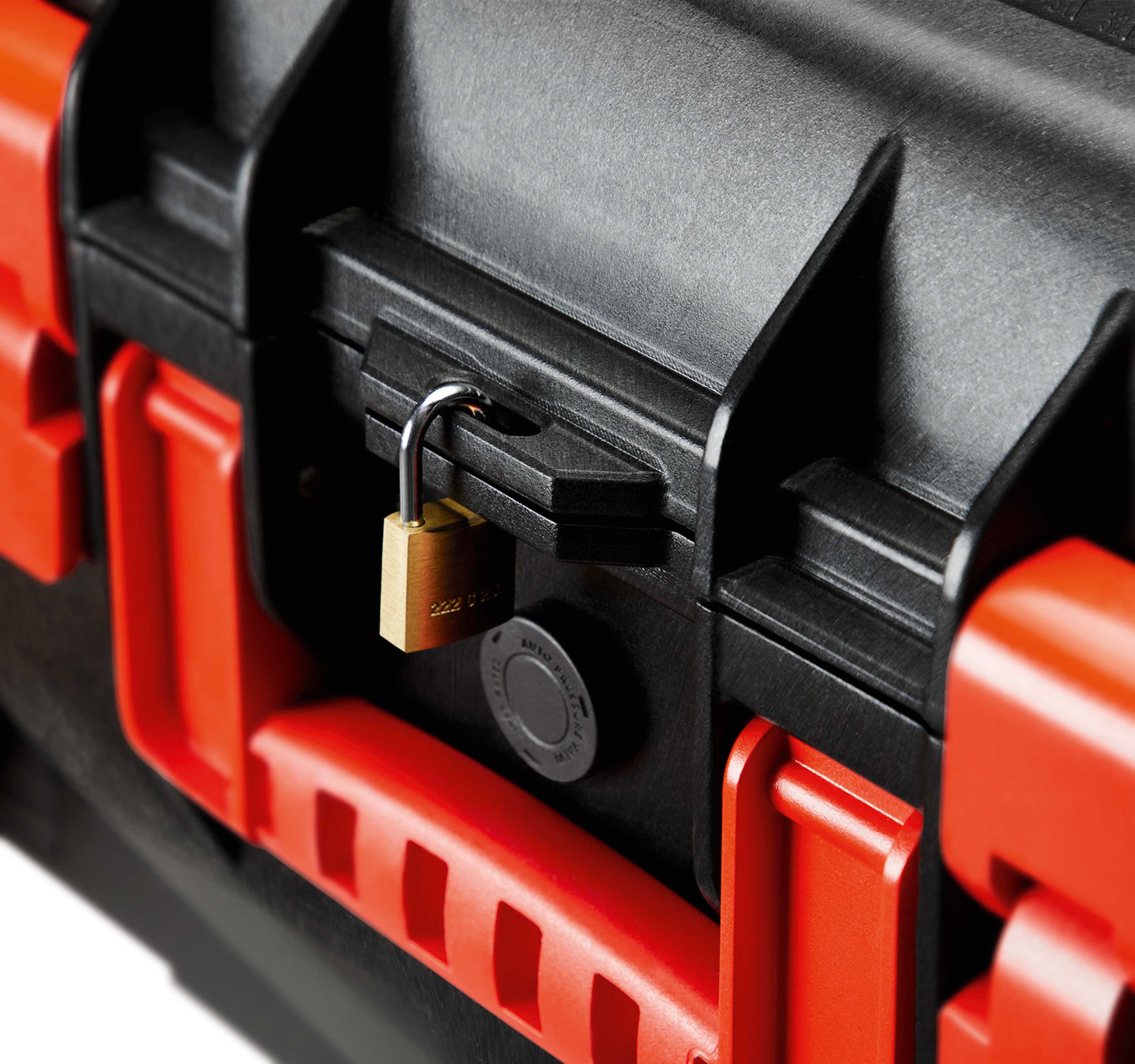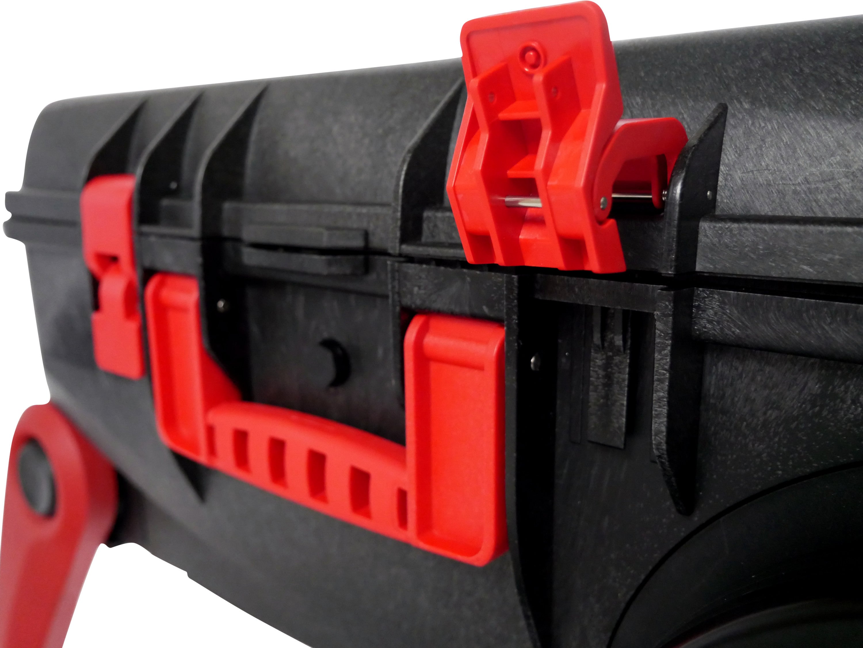 The legs can be folded out, turning the case into a stable step-stool, seat, or elevated work-station to allow comfortable and strain-free removal of tools. On top of the lid find V-shaped channels with inch and metric rulers to facilitate cutting material, such as electrical conduits, at the worksite. Need some light? The case features strategically placed metal base plates for mounting your magnetized work light. Made of durable polypropylene for everyday use, the case also features gas-filled lid struts for holding the lid open for convenient access and an air-tight, water-resistant lid seal for tool protection.