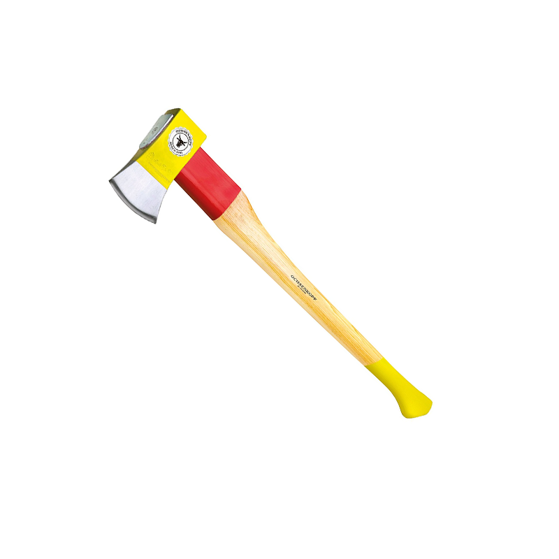 Optimum splitting results. Less force required due to wedge-shaped blade With patented handle join Rotband-Plus: Handle sleeve, tapered collar, fixing plate and wod screw bond the hammer head and the handle into one unit and ensure an optimum in safety. The long handle sleeve made of steel protects the handle from damage when the hammer misses its target. This guarantees a long service life. With high-quality hickory handle. End of handle rounded for extra comfort
