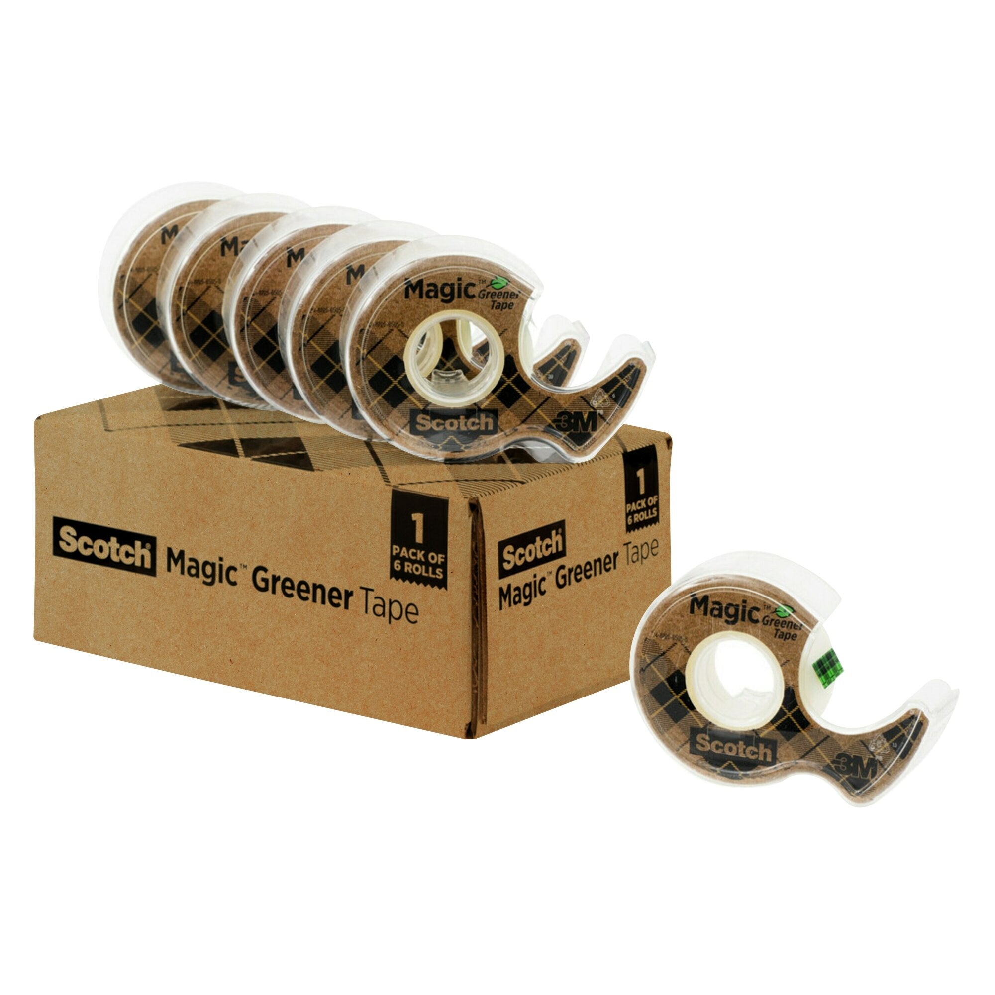 Scotch Magic Greener Tape is a more environmentally friendly version of the original_x000D_ matte-finish, invisible tape, with the same great performance.When important documents and school projects need mending and you also want to help the environment it's Scotch® Magic™ Greener Tape for the many rips and tears you have around the house. Scotch® Magic™ Greener Tape has all the strength of our Magic™ Tape. All the holding power of Magic™ Tape. Disappears just like our tried and true Magic™ Tape. But because Magic™ Greener Tape is made from over 65% recycled or plant based material, it's the more eco conscious choice. It comes with the easy to use Scotch® Tape Dispenser, so the tape glides off smoothly, cuts evenly, with no waste. Works like magic because it's just like Magic™ Tape. Only Greener.