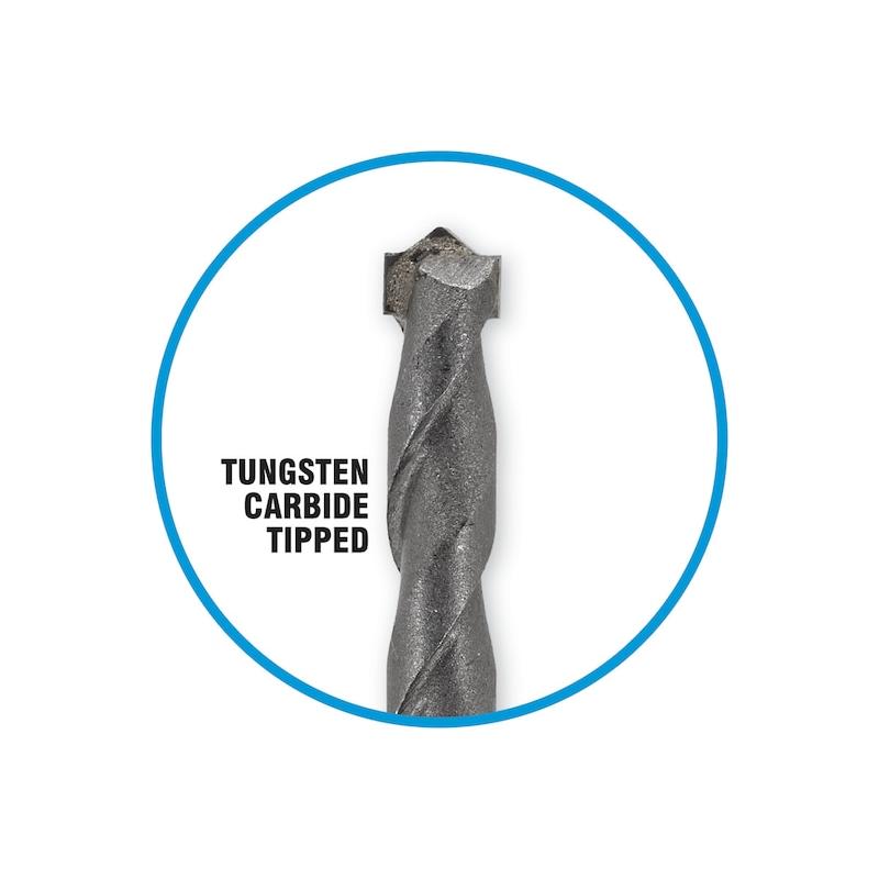 - Tungsten carbide tipped (TCT) pilot bit drills cement block, brick and other masonry materials