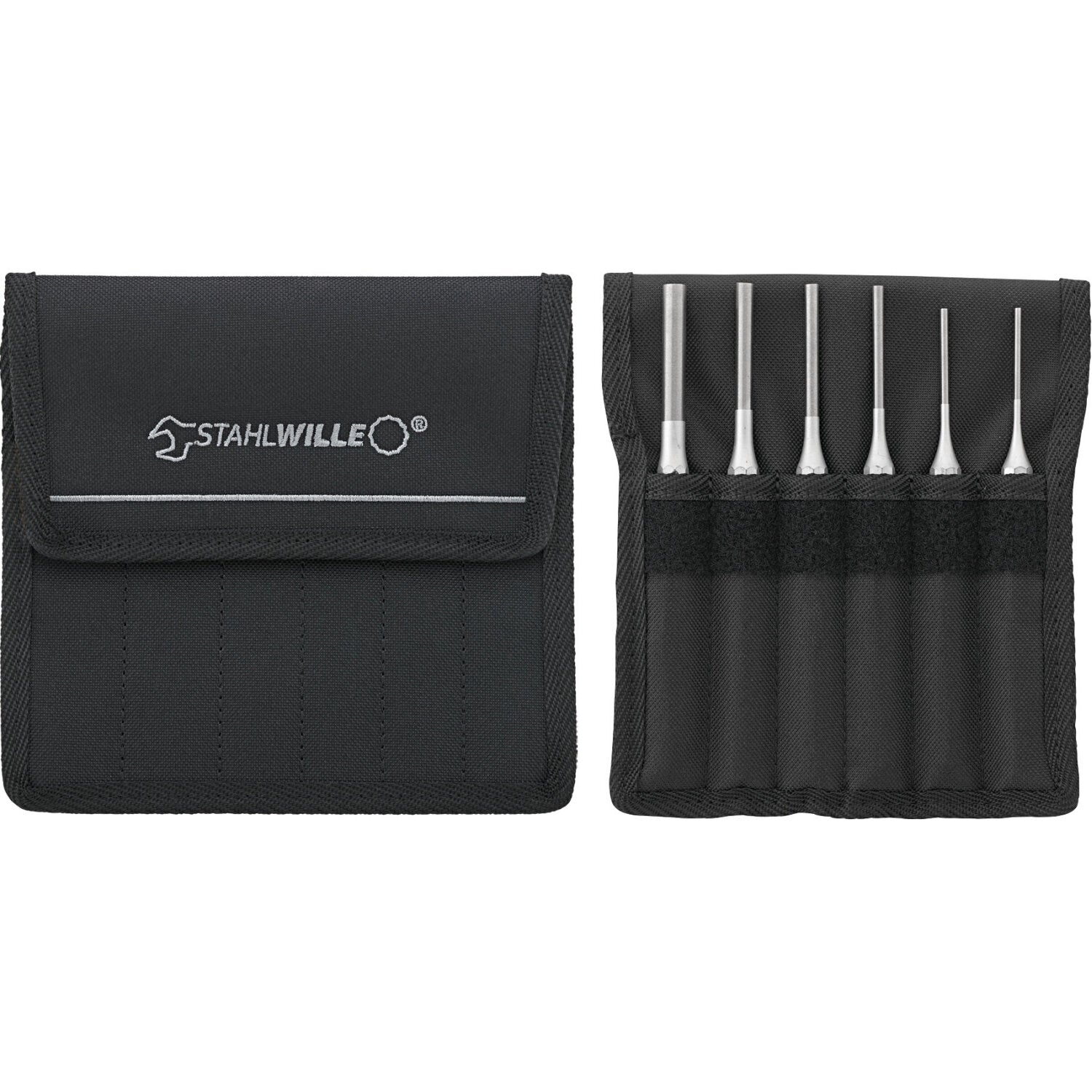 - 6-piece pin punch set in practical textile bag with Velcro fastener made of extremely durable material.