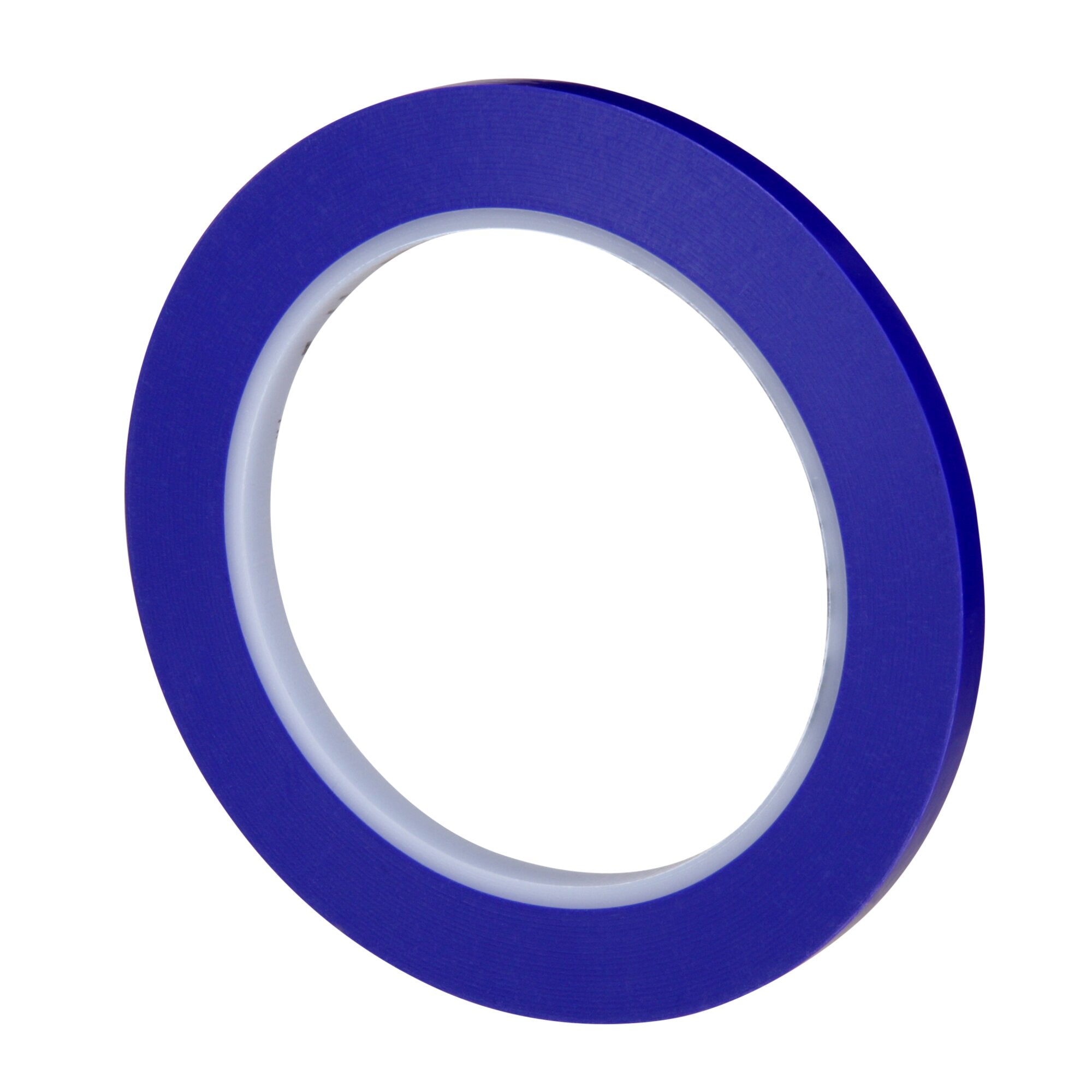 3M™ Vinyl Tape 471+ is a high-temperature paint masking tape designed to create sharp paint lines on complex jobs, including critical paint applications that feature detailed designs or curves. It has a semi-translucent indigo film backing designed to provide some visual clarity for alignment during application.