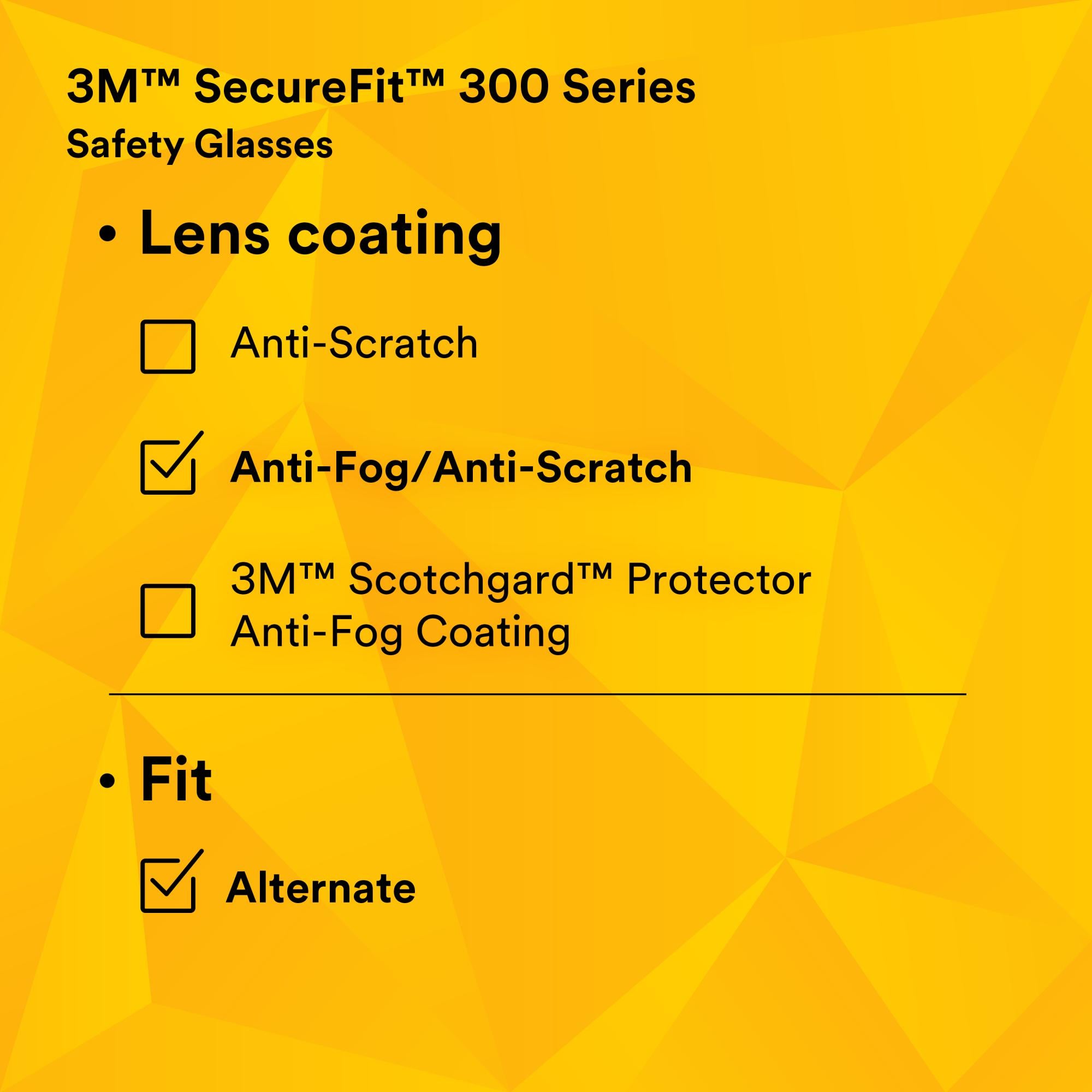 • Choose from models with anti-fog/anti-scratch or 3M™ Scotchgard™ Anti-Fog coating.