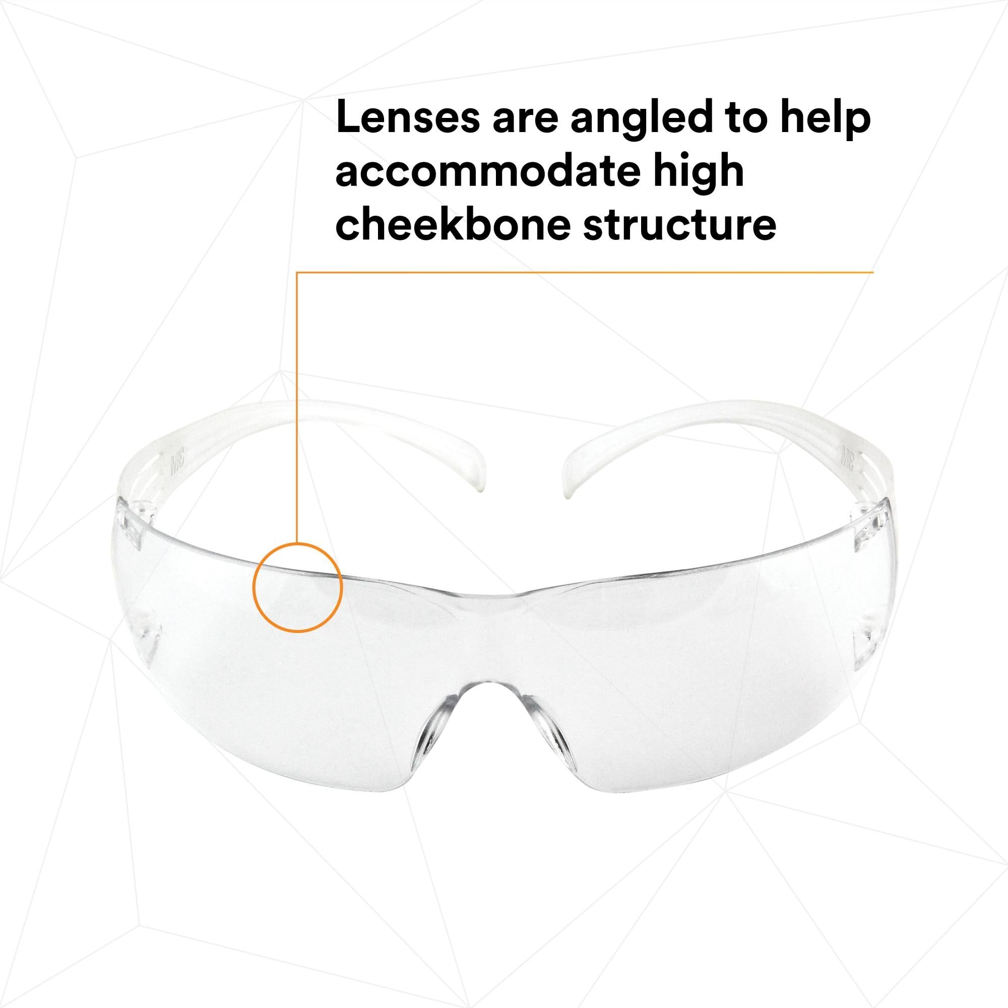 The 3M SecureFit 300 Series of protective eyewear is designed with Asian features in mind, however, the adjusted lens angle and alternative nose bridge may help fit workers with tall cheekbone structure and low nose bridge height regardless of ethnicity.