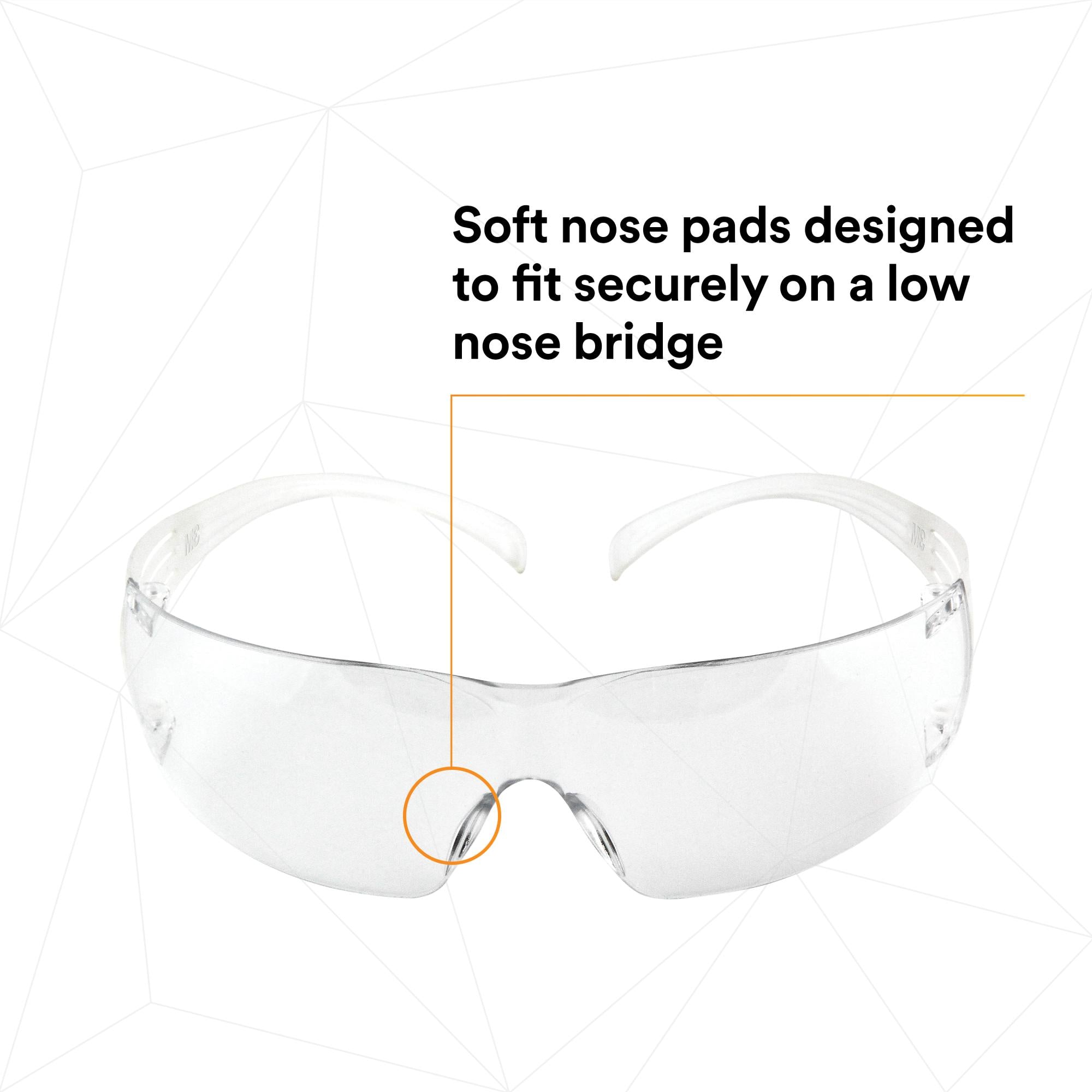 • Soft nose pads help safety eyewear fit securely on a low nose bridge