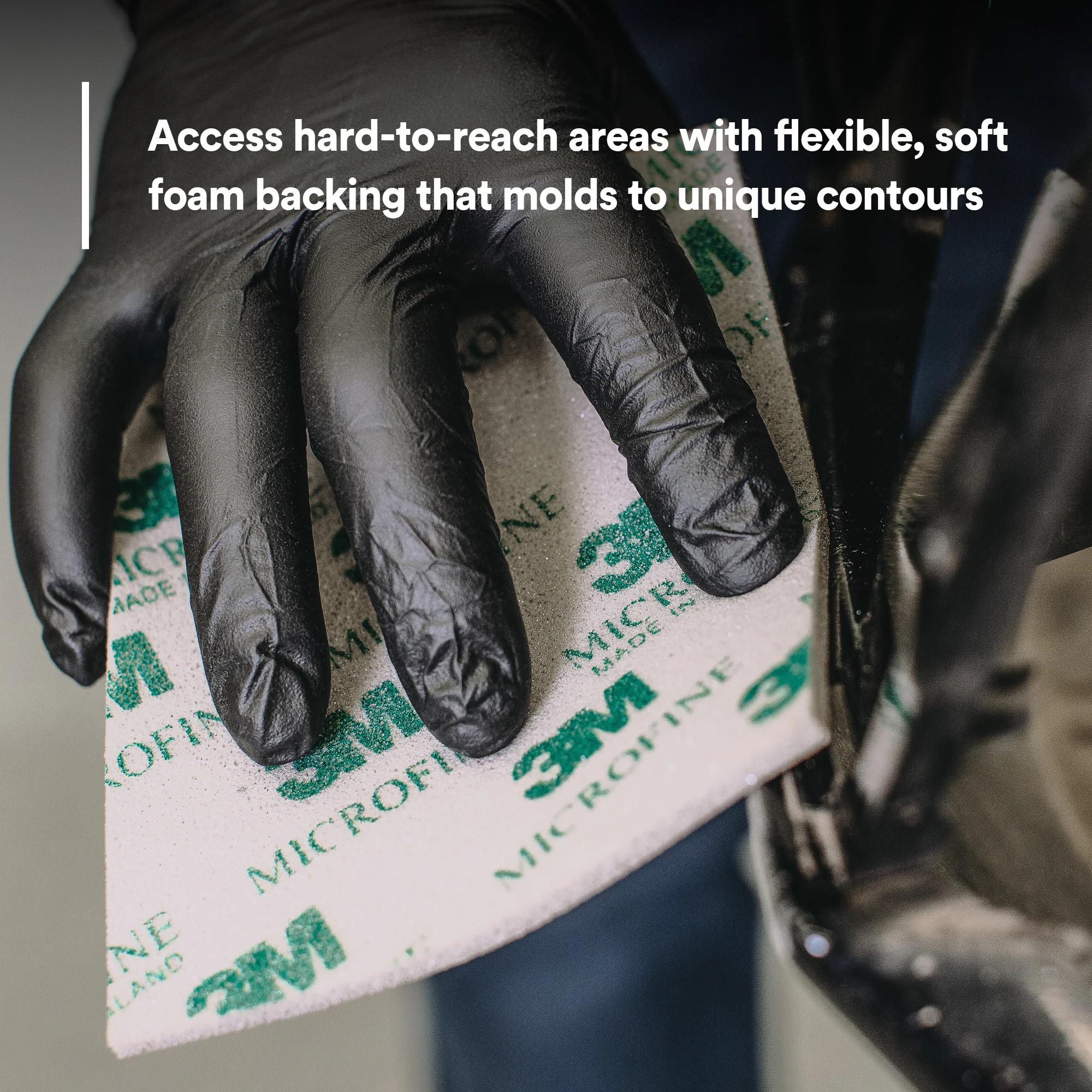 3M Softback Sanding Sponge sands hard-to-reach areas on cars, trucks and vans such as around headlight openings, door handles, door jambs and other locations. The soft, flexible foam backing conforms to virtually any profile or shape on a vehicle. These sponges are coated with long-lasting aluminum oxide abrasive.Makes Difficult Sanding Easy