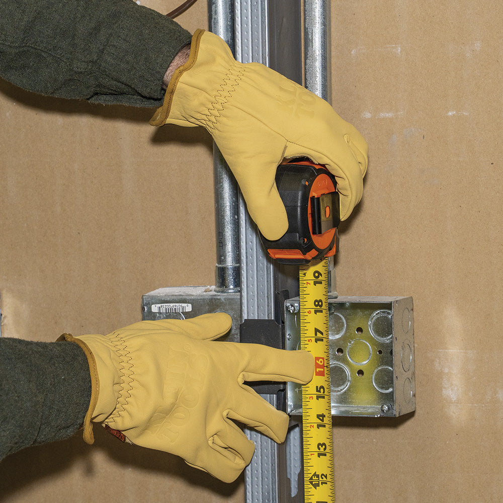 - High abrasion resistant, gunn cut work gloves with seams away from wear surfaces