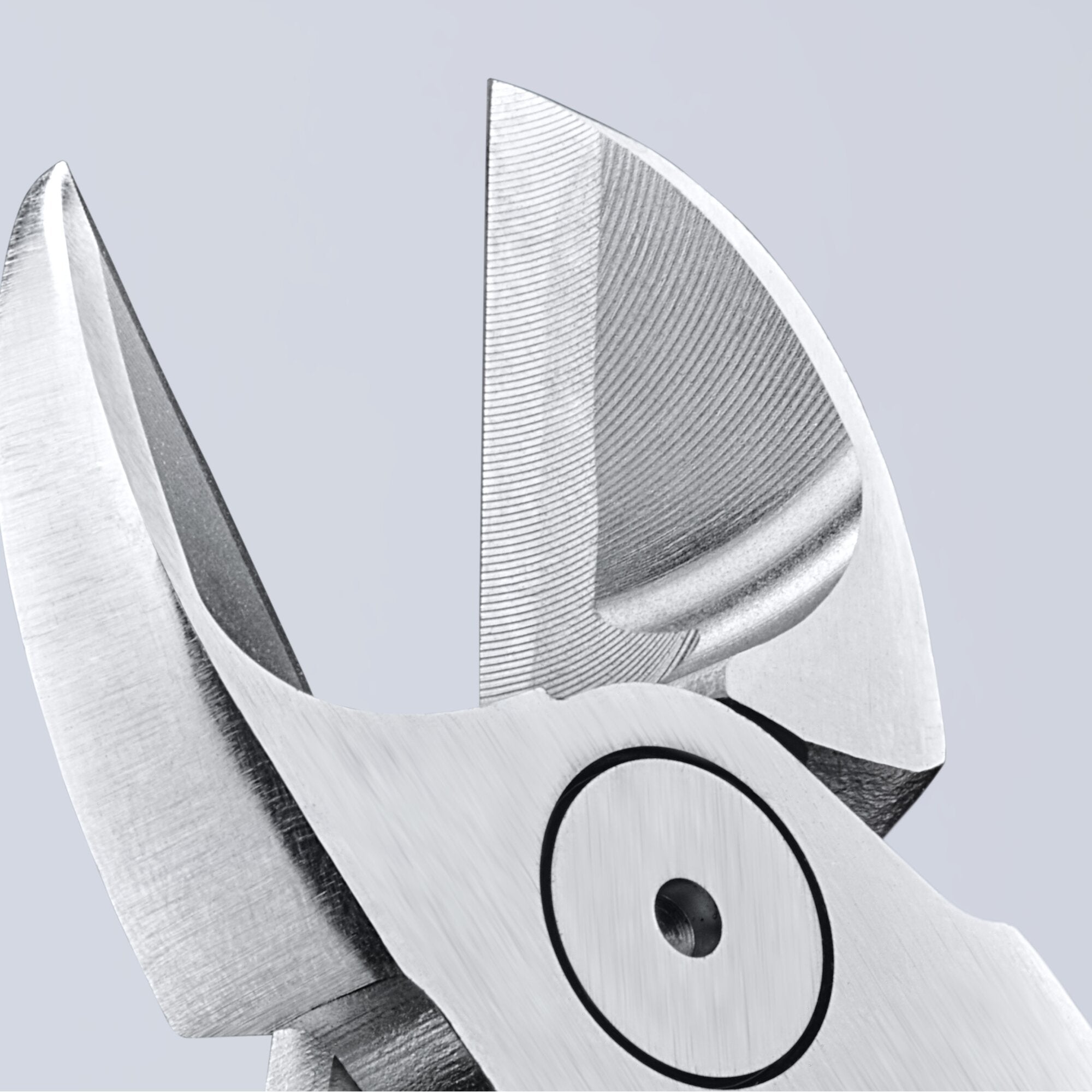 The essential tool for versatile use. High-quality material and precise workmanship for long service life. Precision cutting edges for soft and hard wire. Clean cutting of thin copper wires, even at the cutting edge tips. Induction hardened cutting edges (approx. 62 HRC) for long life. Narrow head style for use in confined areas. Cutting capacity - up to 5/32" for soft, up to 7/64" for medium and up to 5/64" for hard wire. Chrome plated for better chemical resistance. Vanadium steel, forged, oil-hardened in multiple steps.
