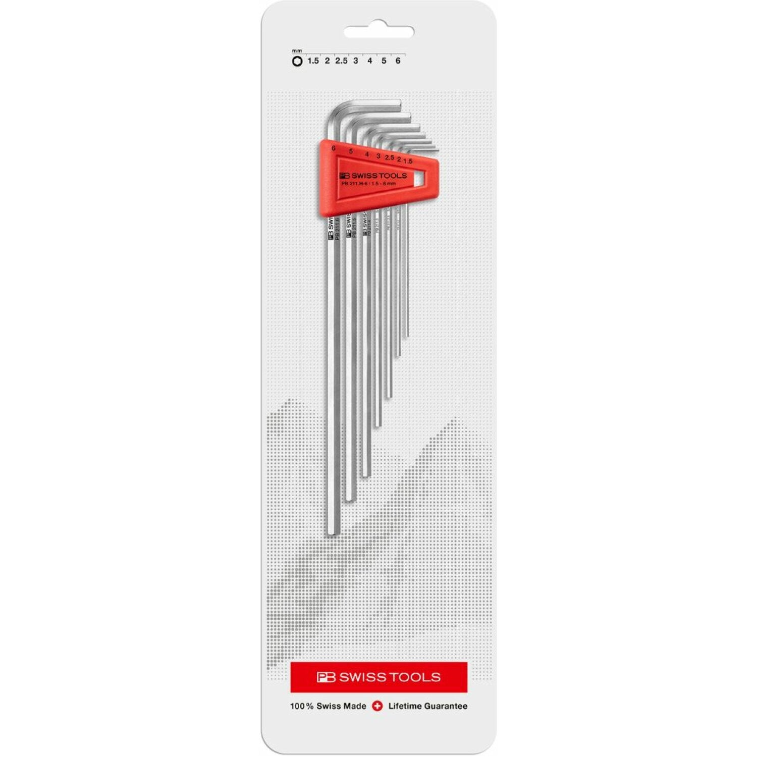 PB Swiss PB 211.H-6 CN Long Hex Key L- Wrench Sets for Hexagon Socket Screws, 7 Pcs
