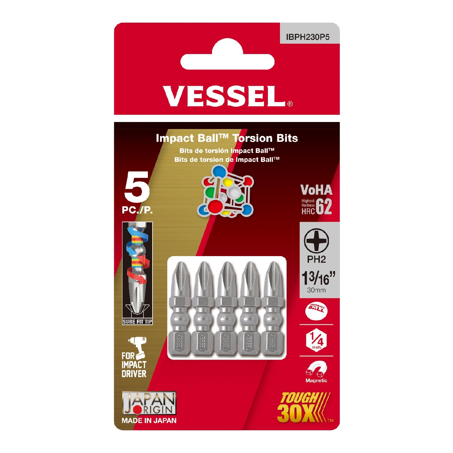 Vessel Tools IBPH230 Impact BallTM Torsion Bits, PH2 x 30