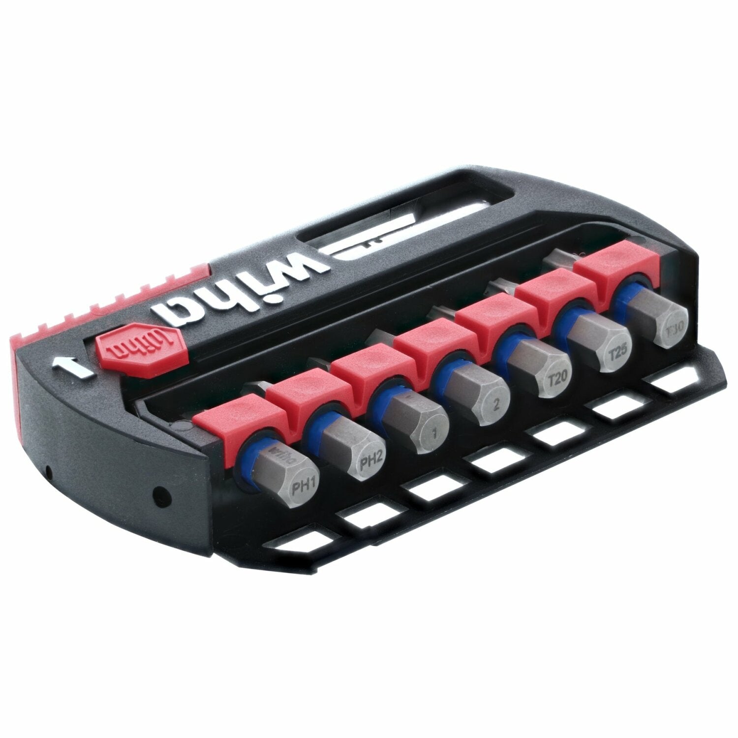 Introducing TerminatorBlue Impact Bit Sets from Wiha Tools—an innovative bit solution in a rugged convenient pocket-sized case. Terminator Impact Bit Cases are constructed of an industrial-grade engineered polymer and feature a flip-top cover for easy bit access and multiple chambers to securely organize and store your bits. The Wiha TerminatorBlue Impact bit cases are available for 1-inch and 2-inch bit lengths and include a wide variety of tip profiles. Terminate screws faster—and with fewer broken bits. Wiha's TerminatorBlue Impact Bits—proven toughest. TerminatorBlue Bits are impact rated for power tools and rigorously heat-treated to produce a bit lasting 120 times the service life compared to standard bits. With TerminatorBlue Impact Bits you get the tightest-fit precision-machined driver tips from the company that sets the standard for precision. Wiha's exact-fit tips eliminate excessive bit-wobble for increased driver accuracy. The result is a highly stable engagement with the screw head and a reduction in fastener cam-out that can lead to injury or damage to finished materials.