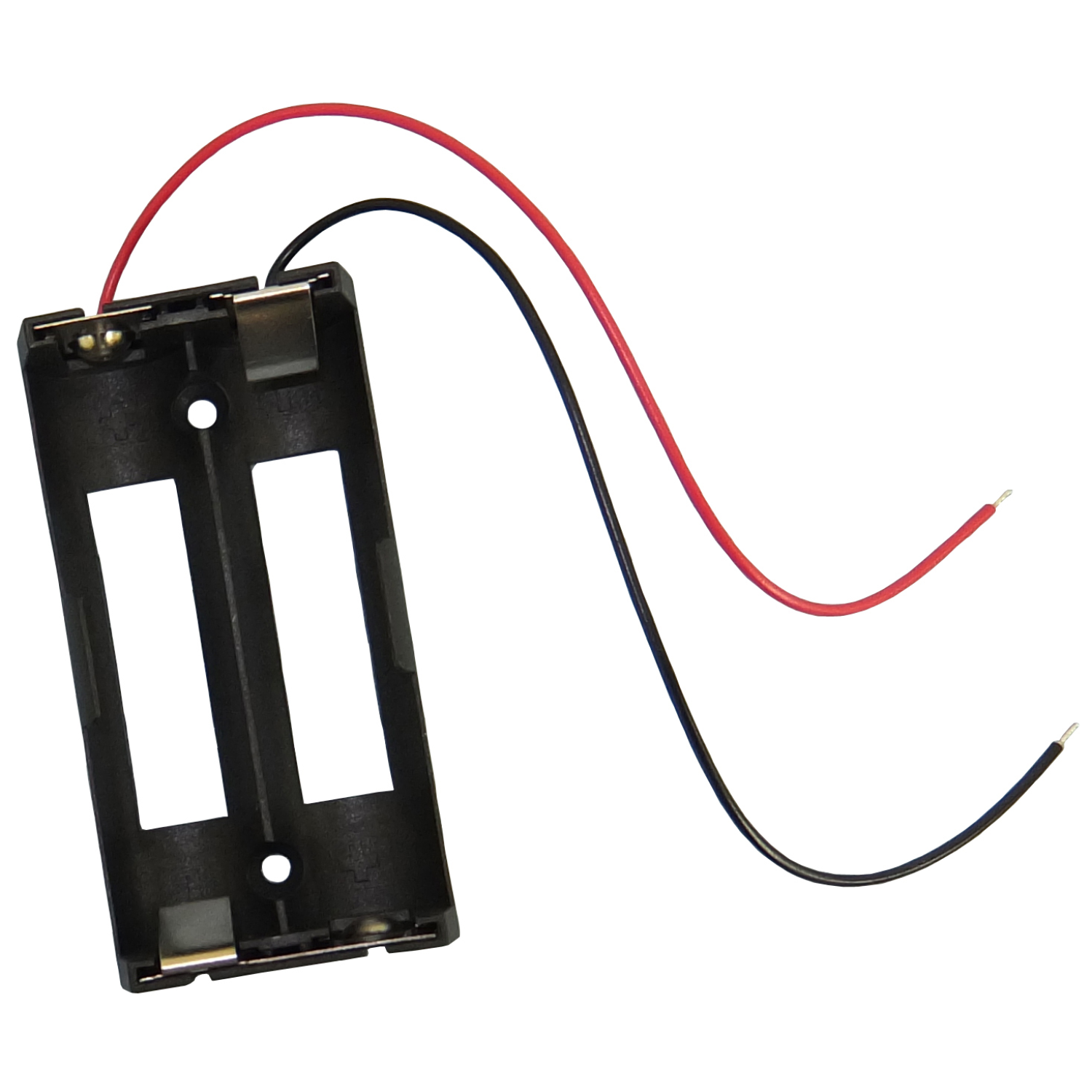 The Philmore 1865D is a reliable dual battery holder designed for two rechargeable 18650 lithium-ion batteries. It is constructed from high-quality plastic materials to ensure long-term durability and secure battery retention. The holder features a compact and lightweight design, making it ideal for various electronic applications, including cellphones, laptops, and other devices requiring lithium-ion battery power. The holder consists of a sturdy plastic casing that securely houses two lithium-ion batteries in a side-by-side configuration. It includes spring-loaded metal contacts that provide a reliable connection to the batteries and a 6 inch lead wire, ensuring optimal conductivity.