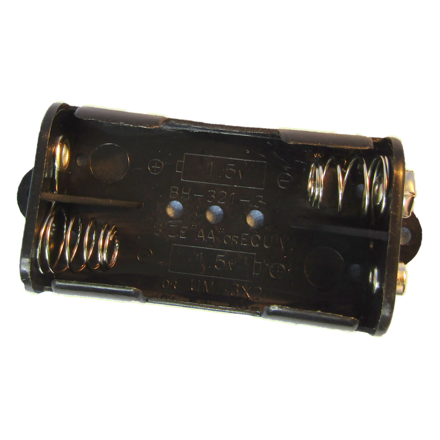 The Philmore BH321SM is a reliable battery holder designed for AA Cell batteries and are compatible with UM-3. It is constructed from high-quality plastic materials to ensure long-term durability and secure battery retention. The holder features a compact and lightweight design, making it ideal for various electronic applications, including flashlights, TV remotes, and other devices requiring AA Cell battery power. The holder consists of a sturdy plastic casing that securely houses two AA Cell batteries in a side-by-side configuration. It includes spring-loaded metal contacts that provide a reliable connection to the batteries, ensuring optimal conductivity. The holder also features clearly marked positive (+) and negative (-) terminals for easy battery installation and polarity identification.