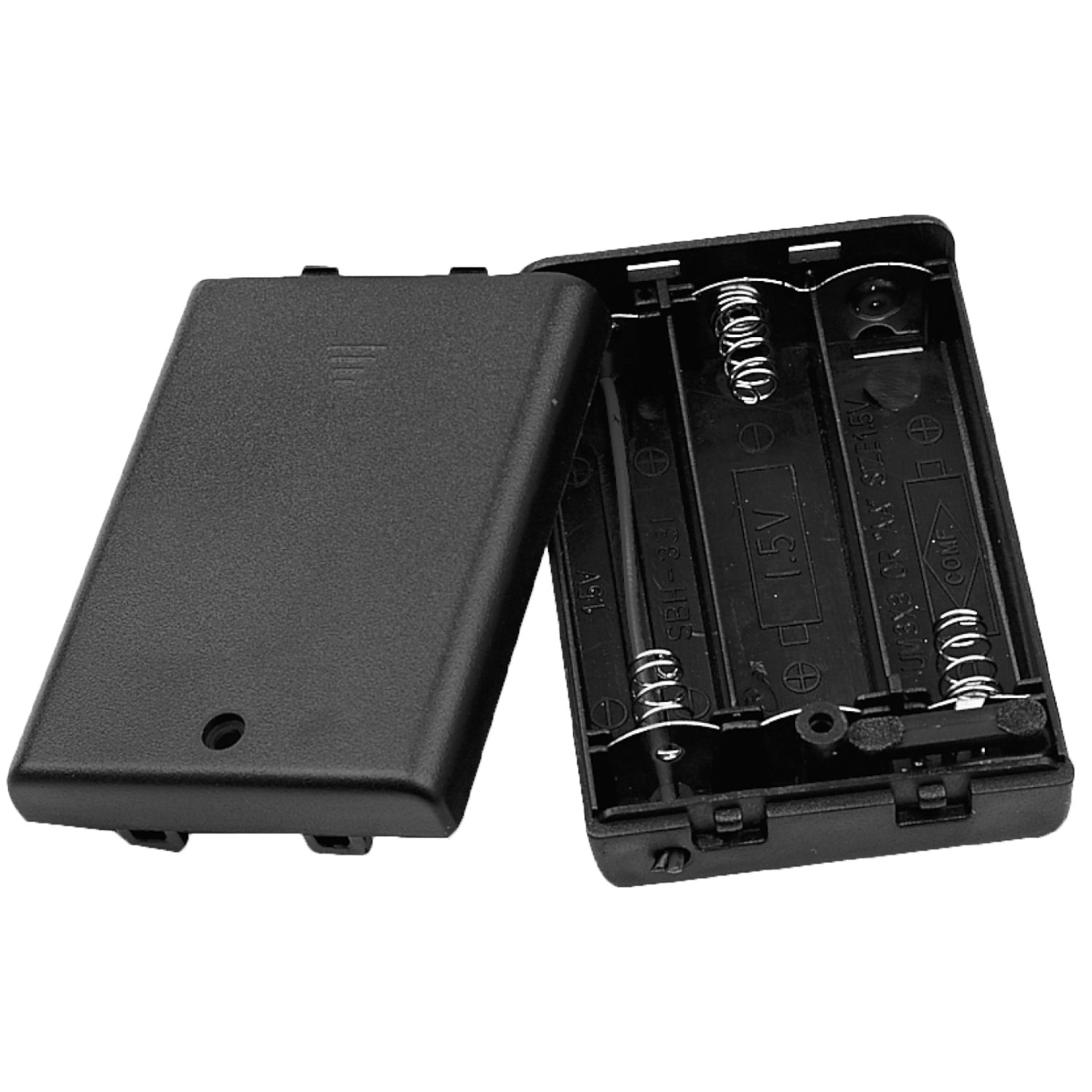 The Philmore BH4311 is a reliable battery holder designed for AAA Cell batteries and are compatible with UM-4. It is constructed from high-quality plastic materials to ensure long-term durability and secure battery retention. The holder features a compact and lightweight design, making it ideal for various electronic applications, including flashlights, TV remotes, and other devices requiring AAA Cell battery power. The holder consists of a sturdy plastic casing that securely houses three AAA Cell batteries in a side-by-side configuration. It includes spring-loaded metal contacts that provide a reliable connection to the batteries, ensuring optimal conductivity. The holder also features clearly marked positive (+) and negative (-) terminals for easy battery installation and polarity identification.