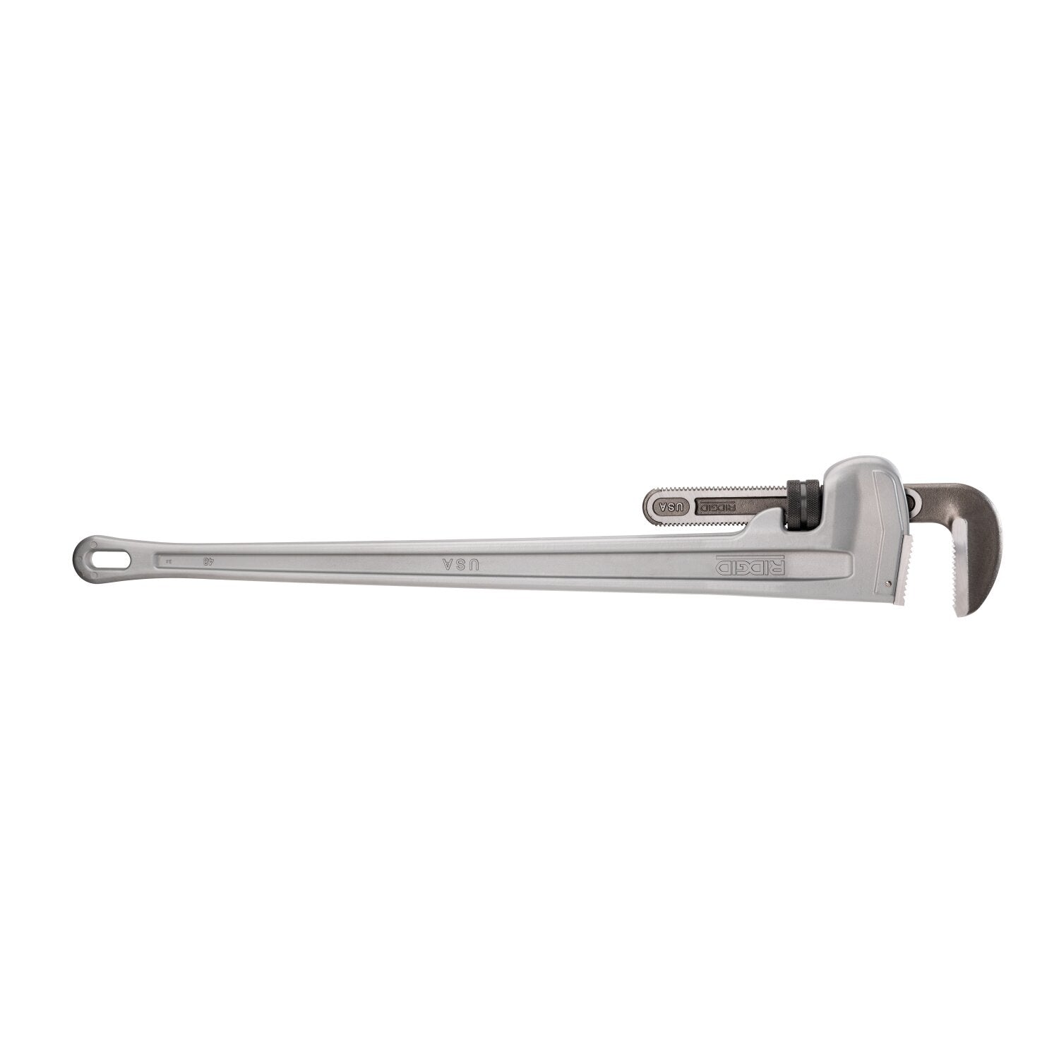 The Ridgid 36" Aluminum Straight Pipe Wrench combines lightweight design with high durability, making it the ideal tool for professional plumbing tasks. Weighing only 11 pounds, this wrench is easy to handle while ensuring maximum gripping strength thanks to its replaceable alloy steel jaws. It can accommodate pipes up to 5 inches in diameter, providing versatility for various applications. Proudly manufactured in Elyria, Ohio, this wrench also complies with strict industry specifications and comes with a full lifetime warranty for added peace of mind.