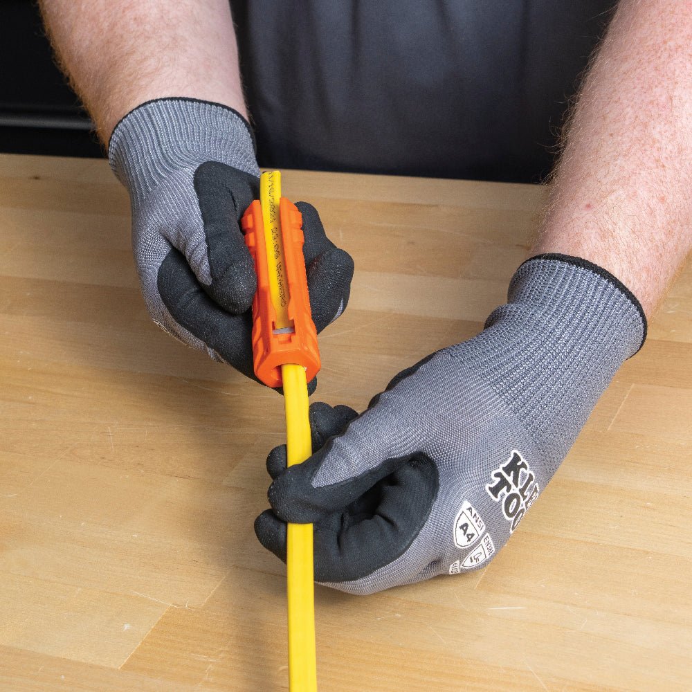 Klein Tools 5-in-1 NM Cable Multi-tool is engineered for efficiency, versatility and compact carry. After cutting the wire to length, this convenient tool performs every task to prepare wire for plugs and light switches. Colored bright orange, making them easy to find in a tool box or low light environments.