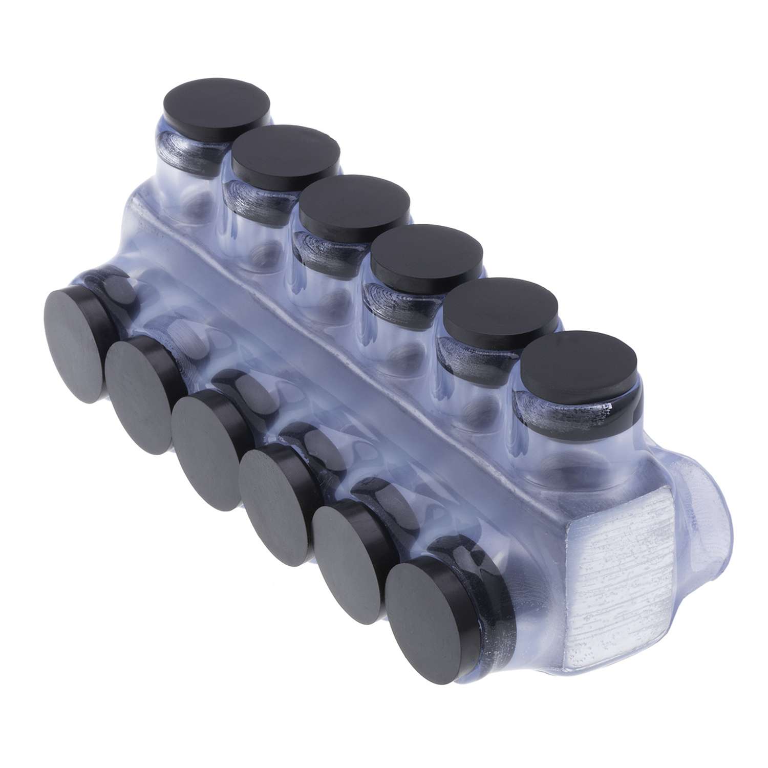 Dual-Sided Wire Entry: Form secure connections between 6 conductors quickly using the double-side entry ports sized for wires between 1/0 AWG and 14 AWG