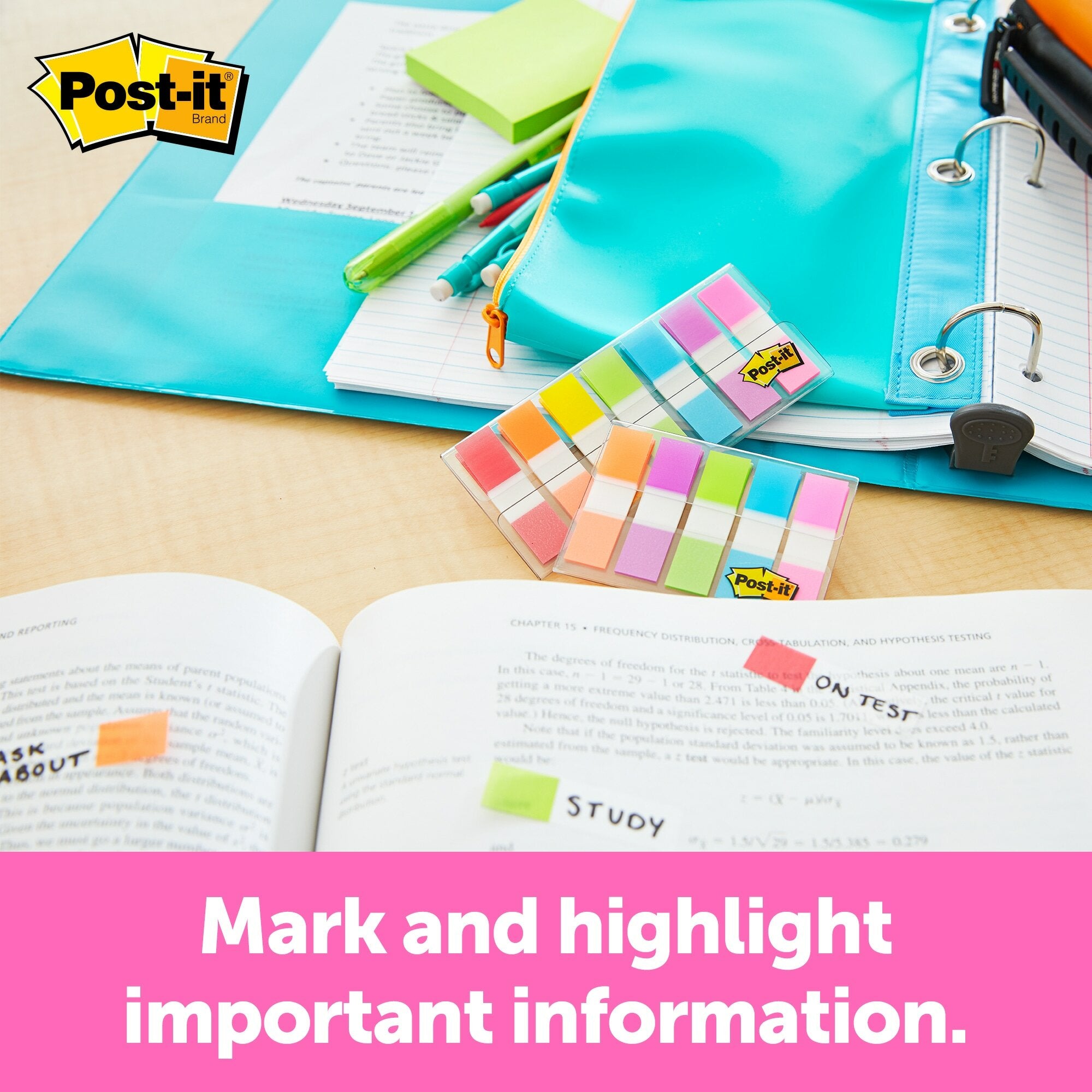 Post-it Flags 683-5CB2 in Assorted Bright Colors, .47 in X 1.7 in, 100 Total Flags in convenient on-the-go dispenserFind it fast with Post-it® Flags in bright eye-catching colors that get noticed. They make it simple to mark or highlight important information in textbooks, calendars, notebooks, planners and more. They stick securely, remove cleanly and come in a wide variety of colors. Draw attention to critical items or use them to index, file or color code your work, either at home, work or in the classroom. This pack contains 100 per on the go dispenser and 1 dispenser/pack, size .47.