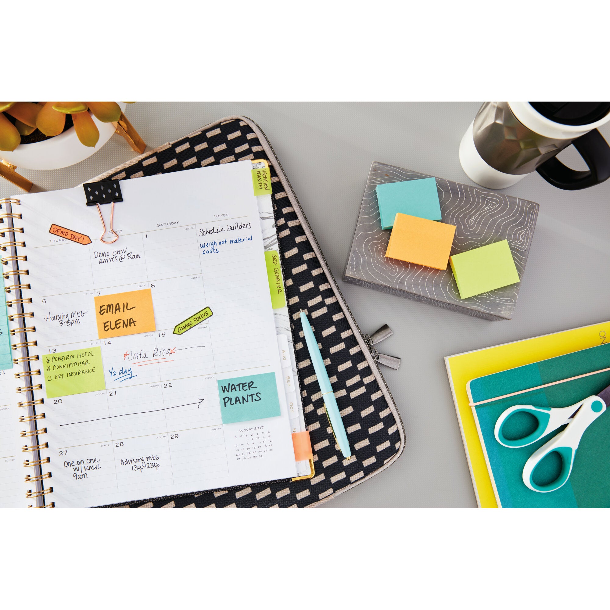 Post-it Notes stick securely and remove cleanly, featuring a unique adhesive designed for use on paper.Post-it Notes in 1 3/8 in x 1 7/8 in stick securely and remove cleanly, featuring a unique adhesive designed for use on paper. Use to call out important information or leave notes in calendars or planners. Value pack box is great for an office or supply area. The Poptimistic collection gives your messages pop and optimism with bright colors that grab attention. 100 Sheets/Pad. 18 Pads/Pack.