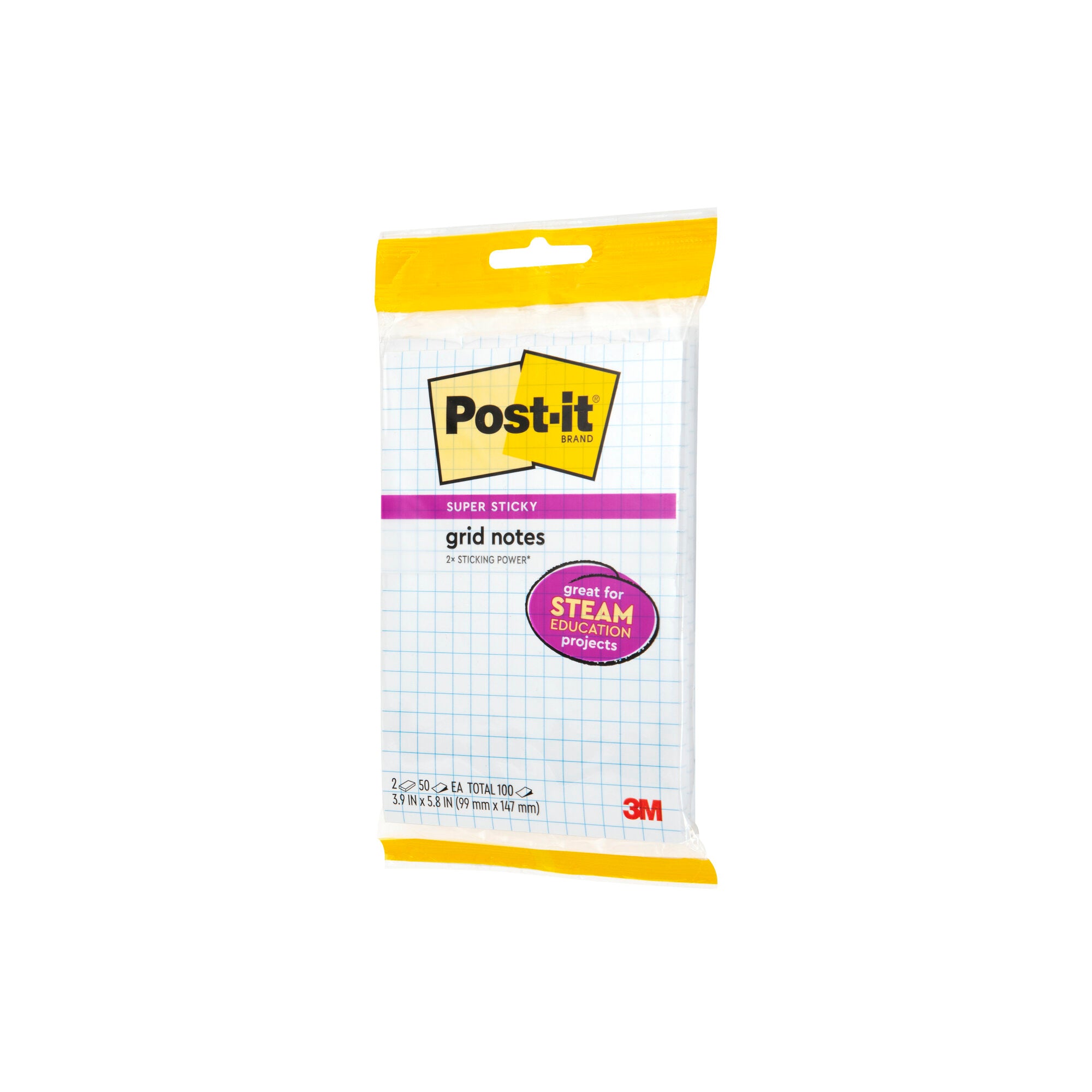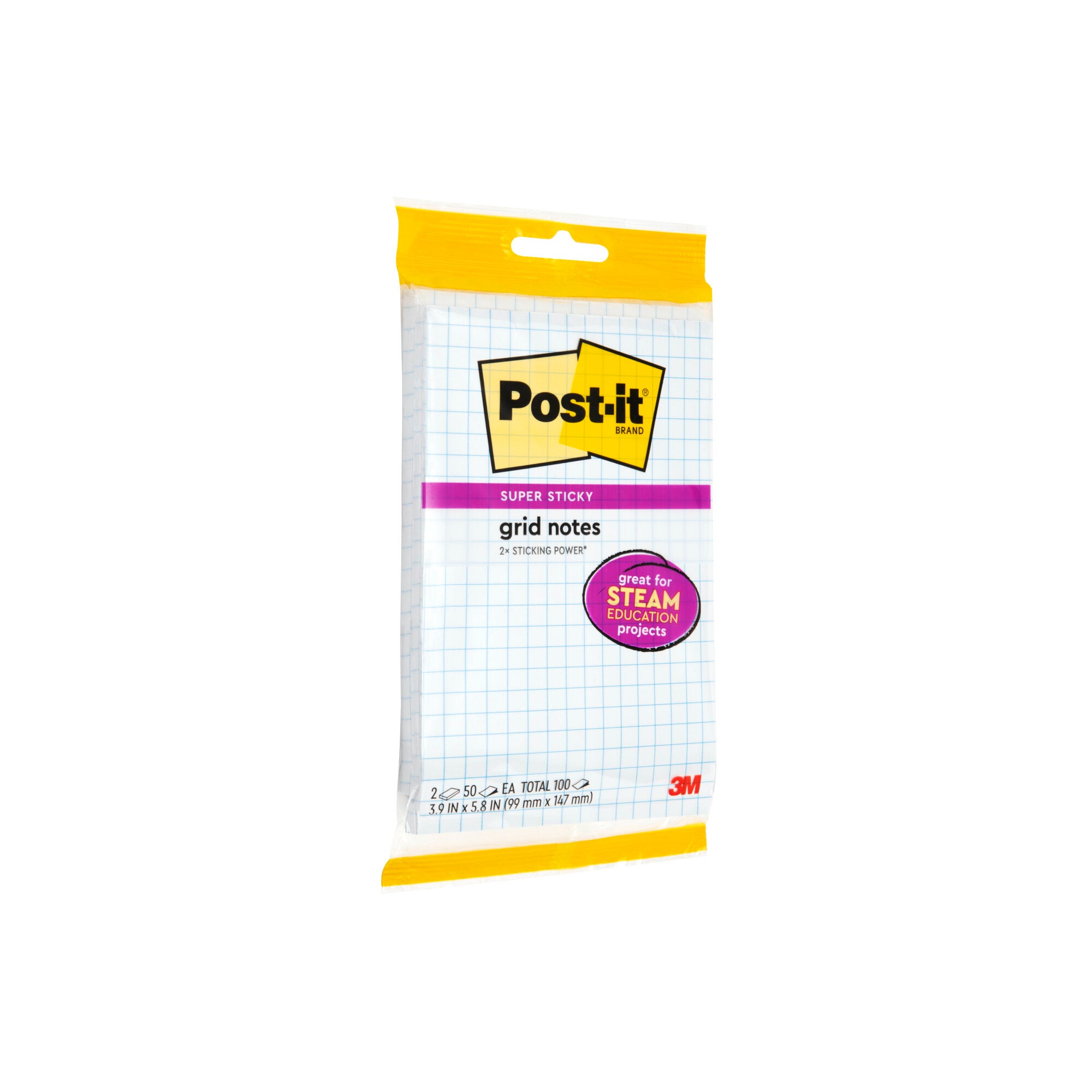Post-it Super Sticky Notes in 4 in x 6 in feature 2x the sticking power. White notes with blue grid-lines notes are great for techies, teachers and students. Use for STEAM projects in your classroom. Move your to-dos with you throughout the day. Great for sketches or to keep to-do lists organized. Post-it Super Sticky Notes are recyclable and the paper in Post-it Super Sticky Notes is sourced from certified, renewable and responsibly managed forests. 2 Pads/Pack, 50 Sheets/Pad.Post-it® Super Sticky Notes in 4 in x 6 in feature 2x the sticking power. White notes with blue grid-lines notes are great for techies, teachers and students. Use for STEAM projects in your classroom. Move your to-dos with you throughout the day. Great for sketches or to keep to-do lists organized. Post-it® Super Sticky Notes are recyclable and the paper in Post-it® Super Sticky Notes is sourced from certified, renewable and responsibly managed forests. 2 Pads/Pack, 50 Sheets/Pad.