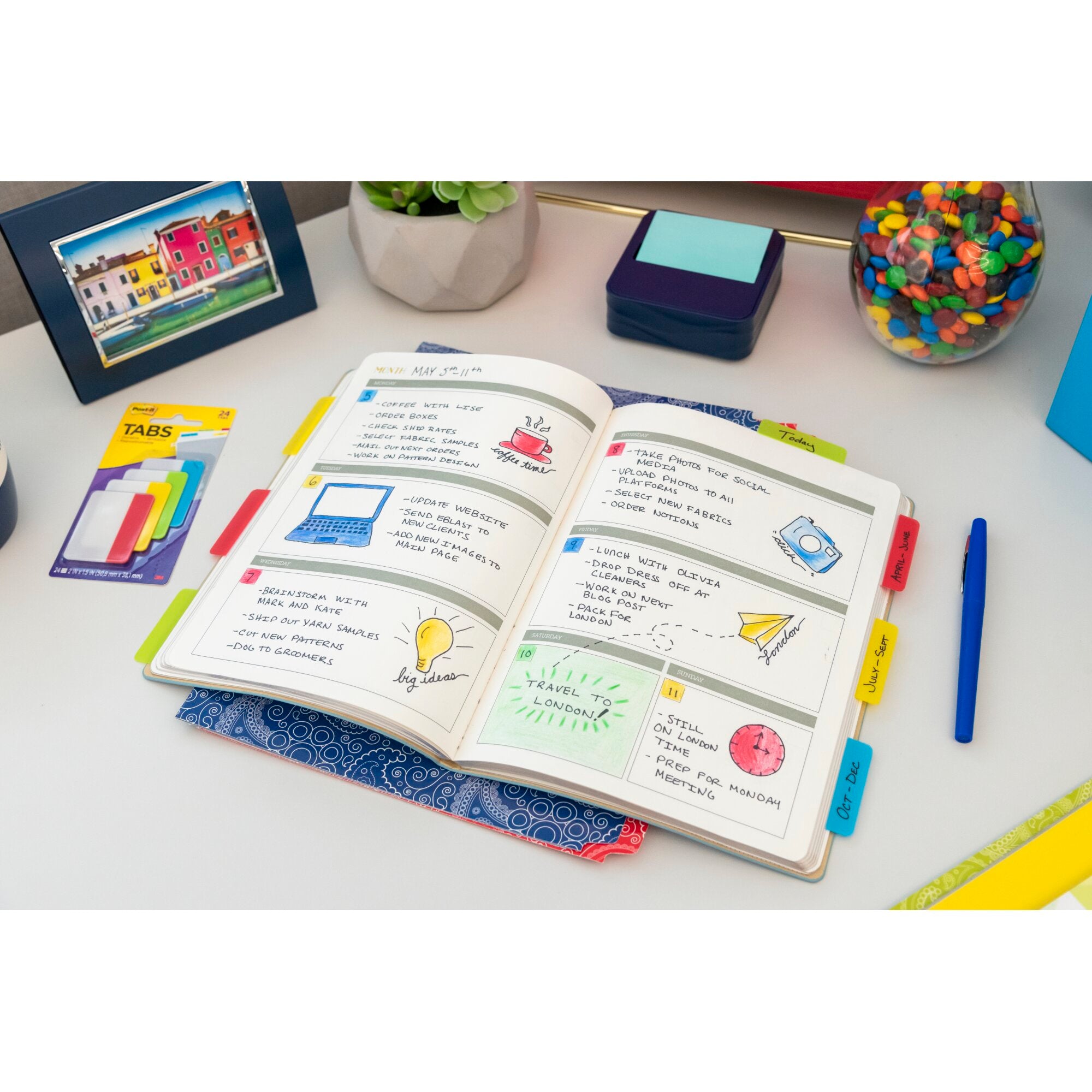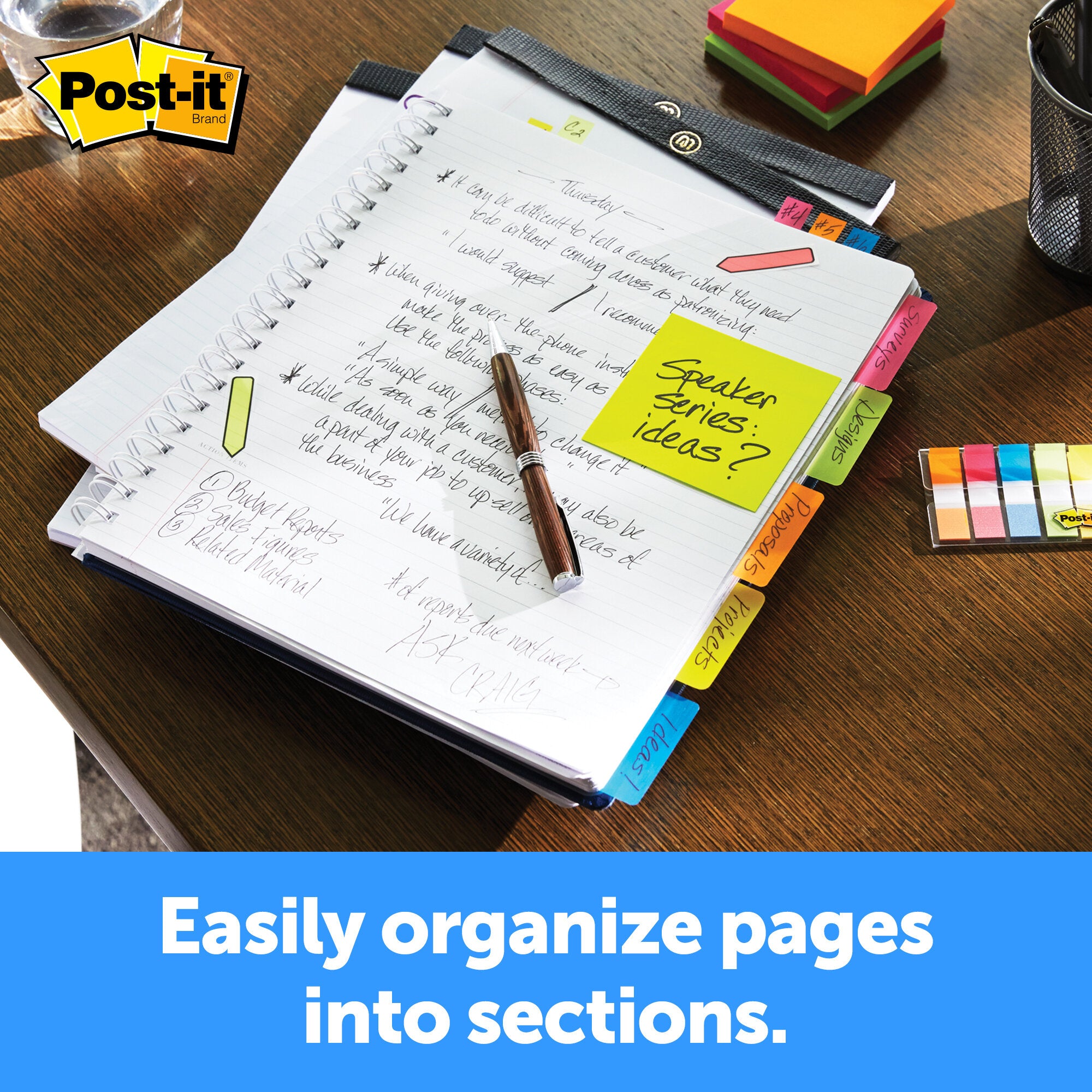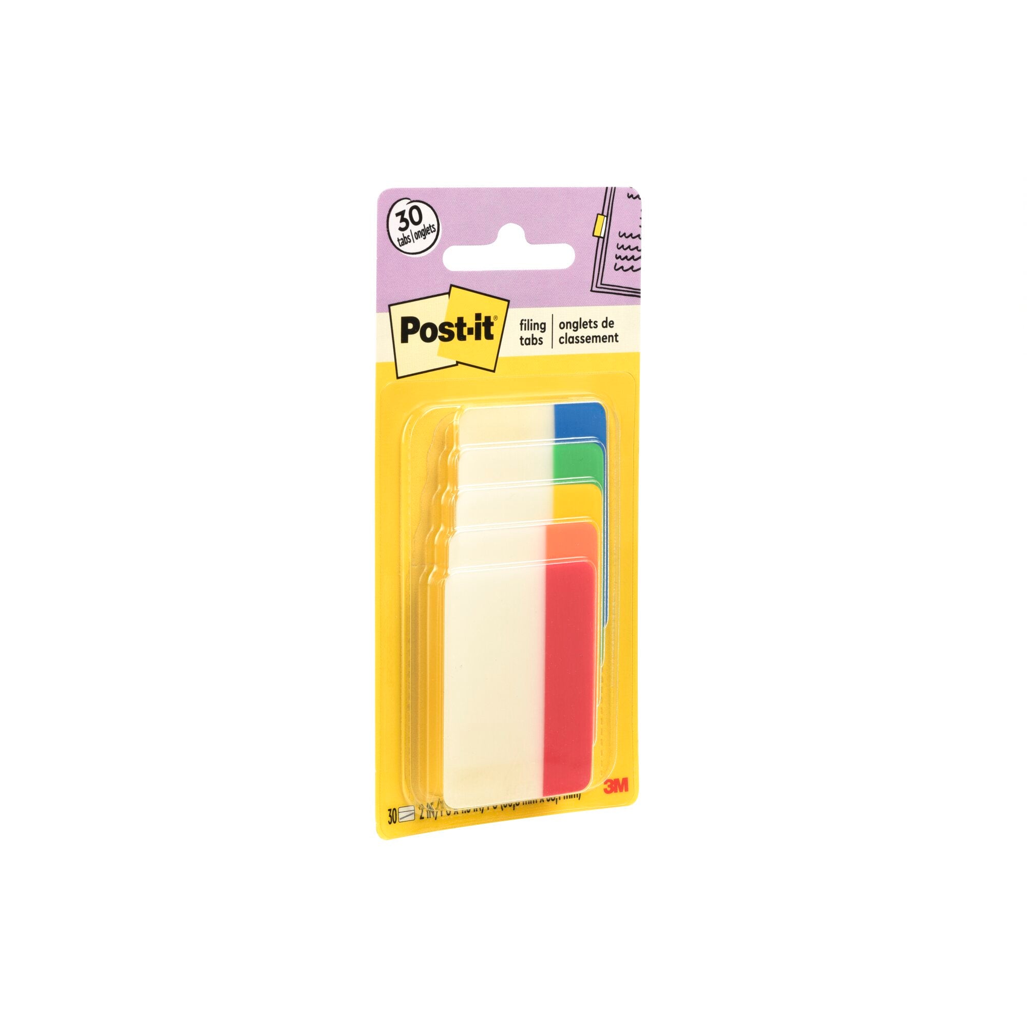 Post-it Tabs are extra thick and strong to stand up to long-term wear and tear. Great for labeling file folders. 5 colors, 30 tabs total.Post-it® Tabs in 2 inch size create necessary order by easily organizing file folders. Solid color bars give you flexibility to organize by color. They are durable, you can write on them, and reposition as needed. They are also great for binders, planners and notebooks. They stick securely and remove cleanly. Assorted colors. Contains 6 tabs/color, 5 colors, 30 tabs/pack.