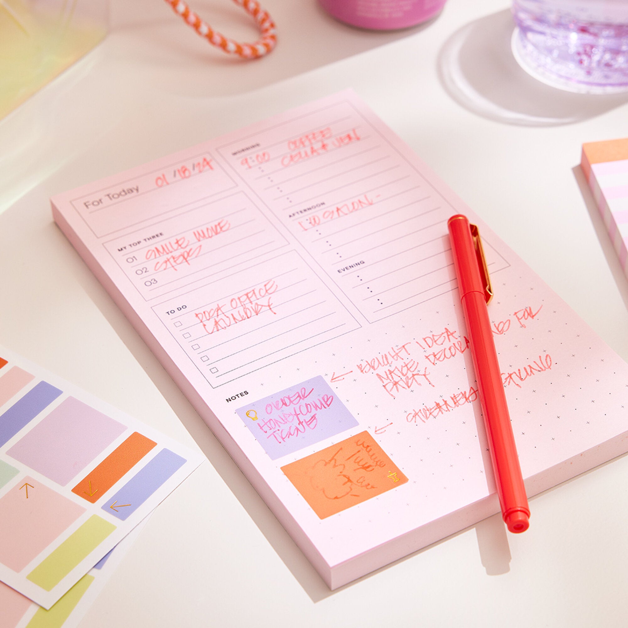 Noted by Post-it® Brand, Translucent Stickers, 3 sheets 16 stickers per sheet. total 48 stickersMeet Noted by Post-it®, a collection of delightfully designed desktop accessories to help inspire, wrangle and commemorate life’s most notable moments. Translucent stickers in assorted sizes and colors help call attention to items and your planner and calendar, while still letting you see underneath the page. The see-through color helps draw attention to what's important. 48 Stickers per pack, sticker sheets are 3 in. x 6 in., 3 sheets per pack, 16 stickers per sheet, 18 stickers are 1 in. x 1.25 in. and 30 stickers are 0.375 in. x 1.25 in.