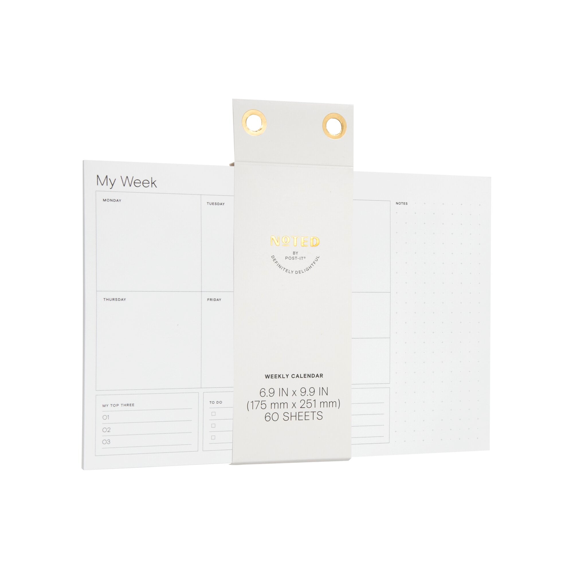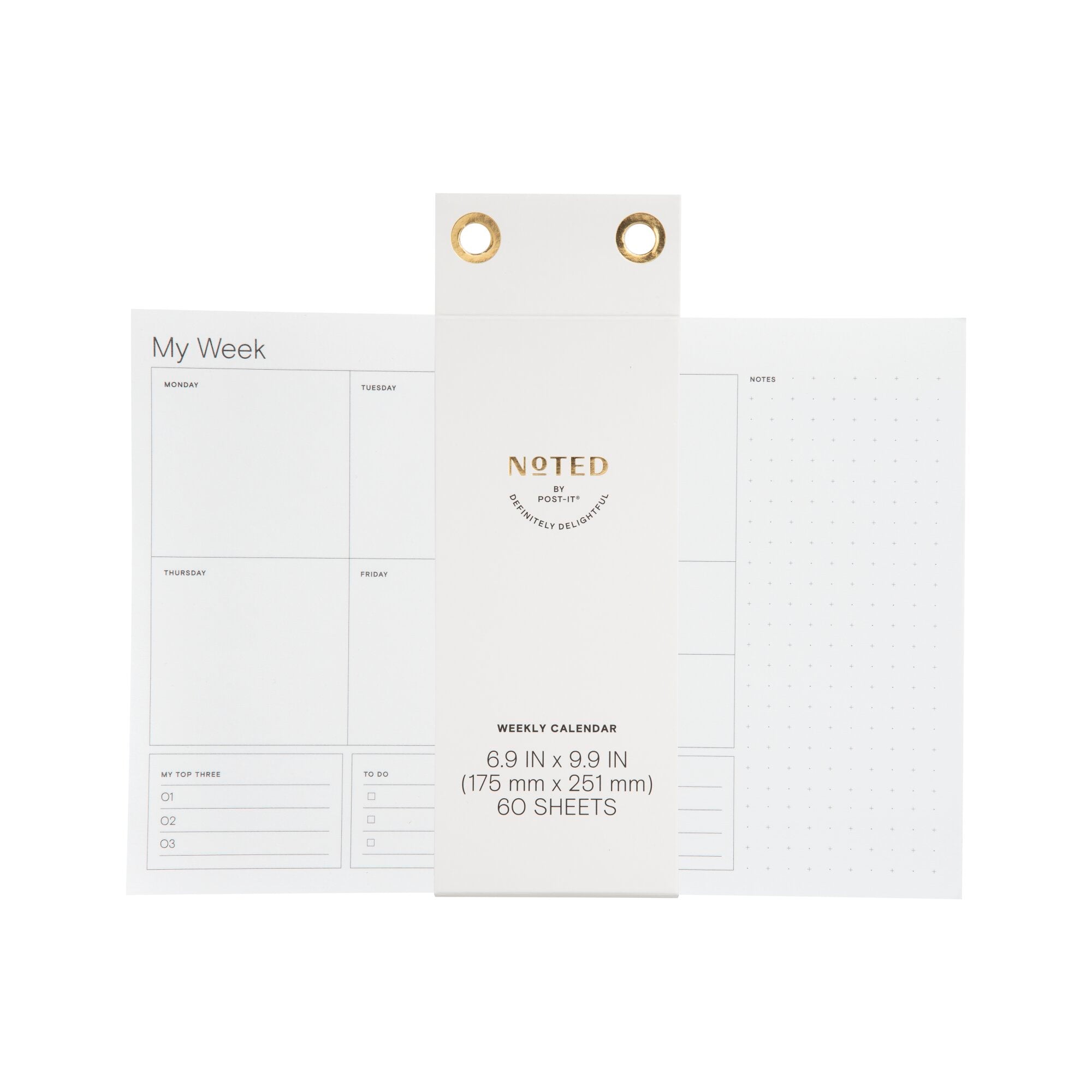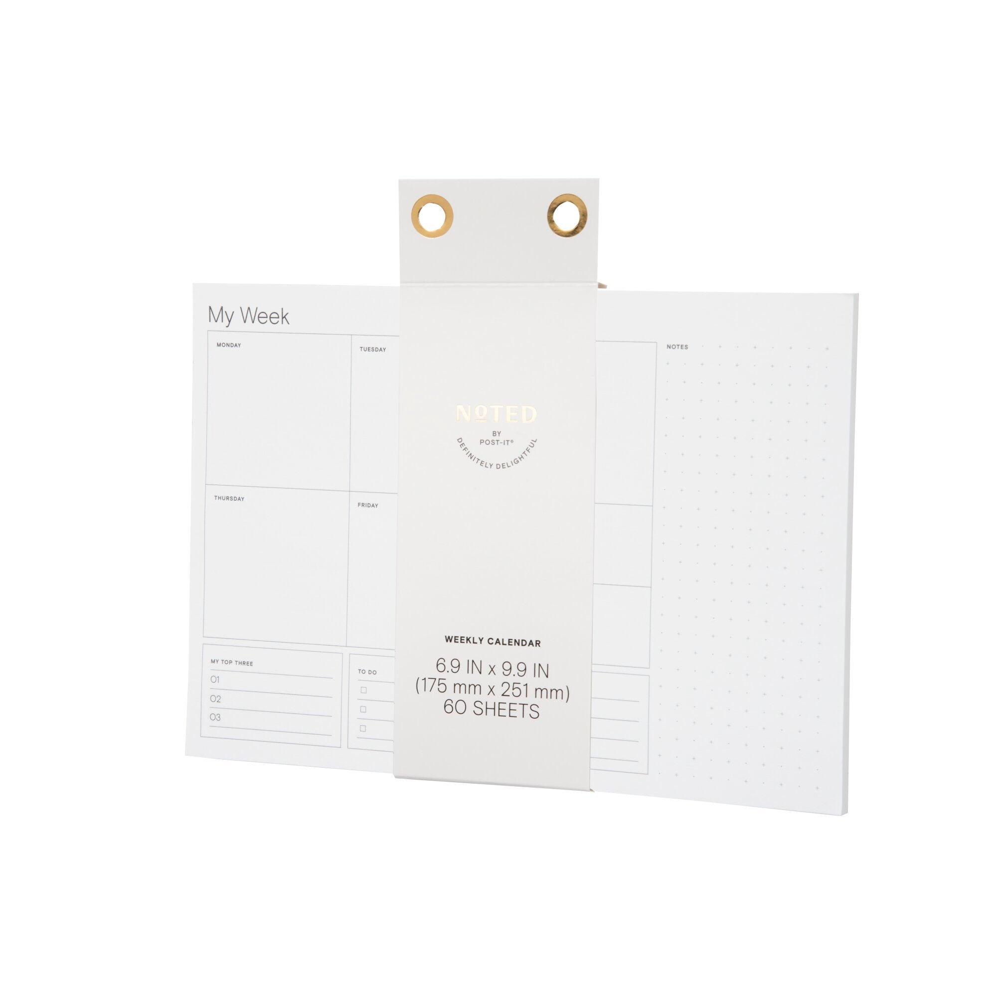 Noted by Post-it® Weekly Calendar, White with pre-printed days, 6.9 in. x 9.9 in.Meet Noted by Post-it®, a collection of delightfully designed desktop accessories to help inspire, wrangle and commemorate life’s most notable moments. This customizable 6.6 in. x 9.9 in. weekly calendar allows you to plan out your week however works best for you. Sheets are white with a pre-printed days of the week and has a dot grid area for free notes. Use with other Noted by Post-it products for a coordinated look. 1 Pad/Pack, 60 Sheets/Pad.