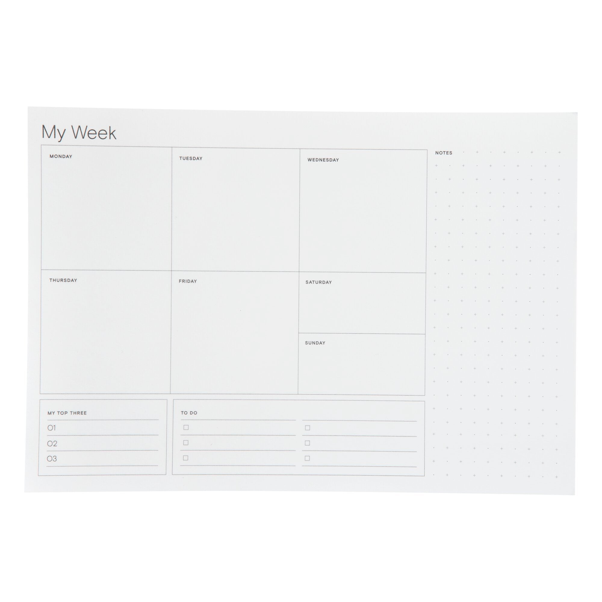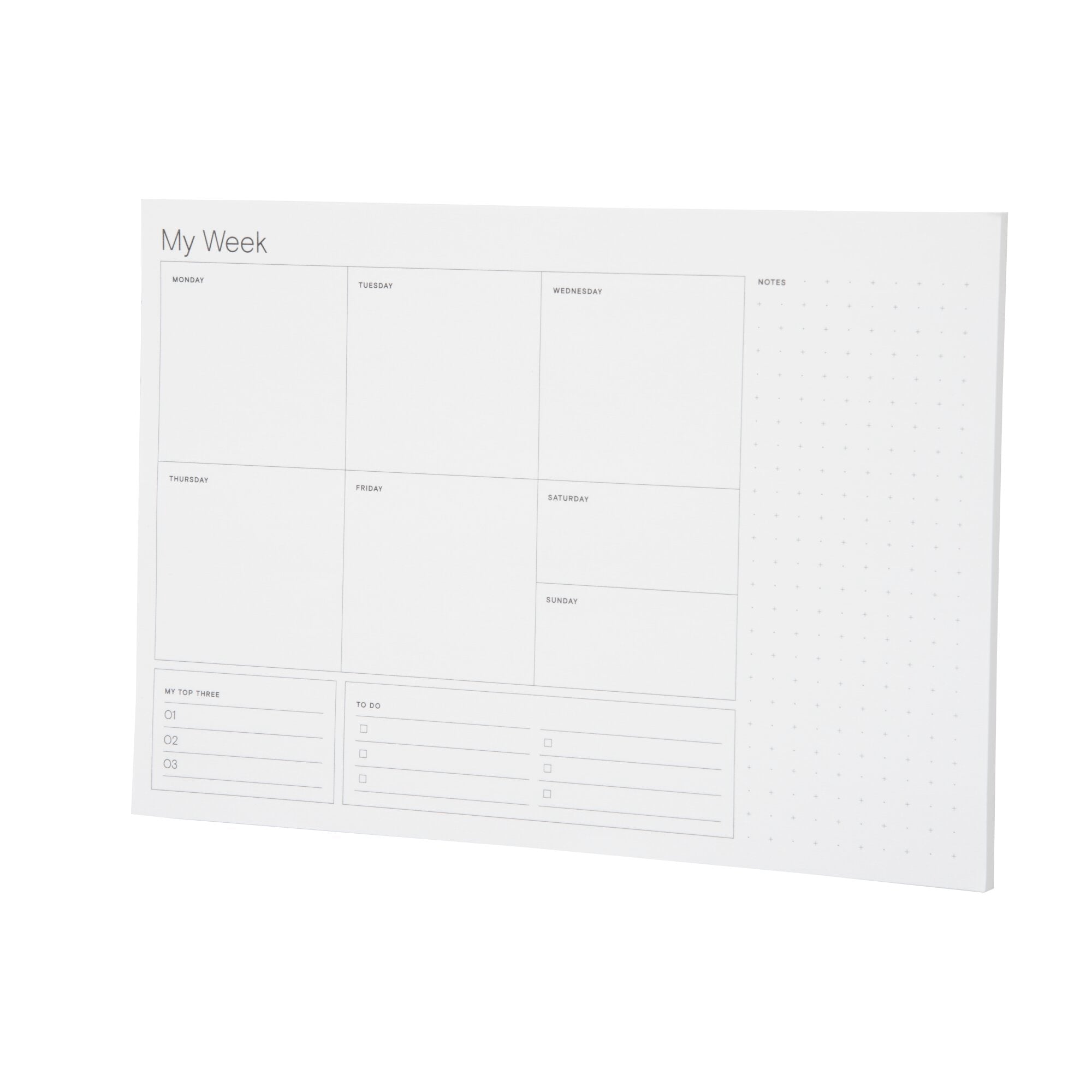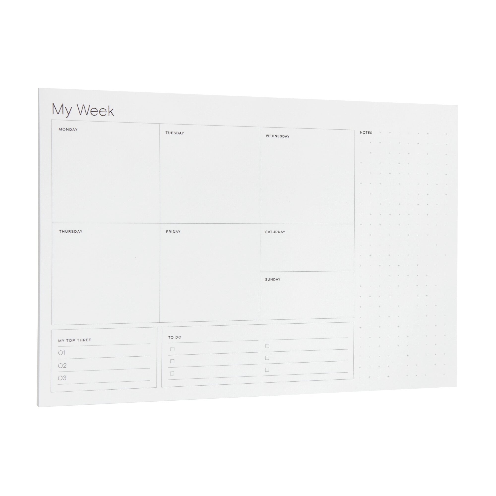 Noted by Post-it® Weekly Calendar, White with pre-printed days, 6.9 in. x 9.9 in.Meet Noted by Post-it®, a collection of delightfully designed desktop accessories to help inspire, wrangle and commemorate life’s most notable moments. This customizable 6.6 in. x 9.9 in. weekly calendar allows you to plan out your week however works best for you. Sheets are white with a pre-printed days of the week and has a dot grid area for free notes. Use with other Noted by Post-it products for a coordinated look. 1 Pad/Pack, 60 Sheets/Pad.