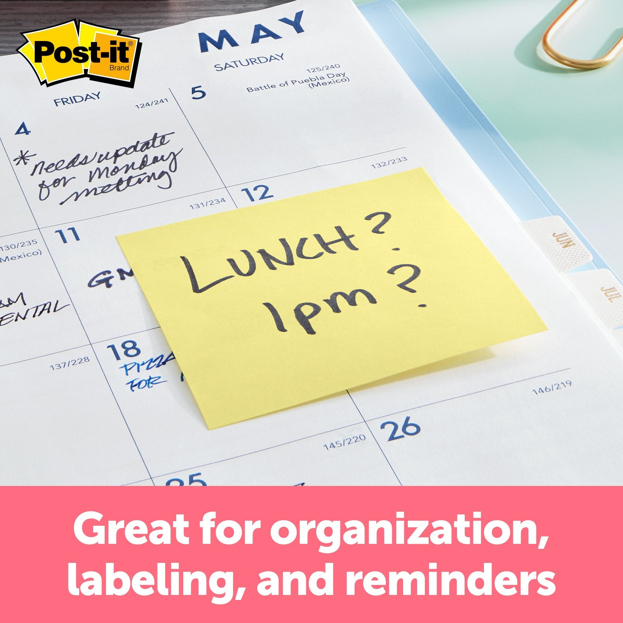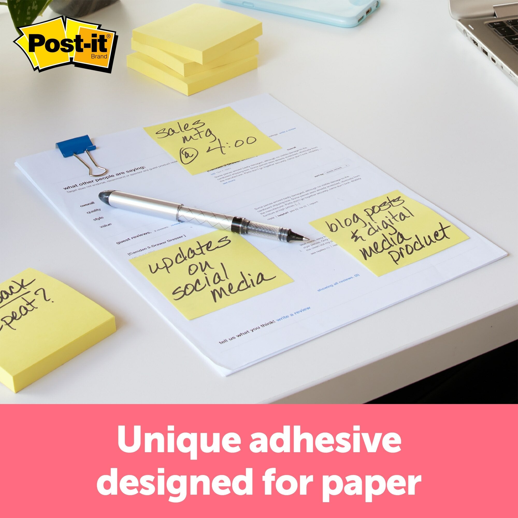 Post-it Notes stick securely and remove cleanly, featuring a unique adhesive designed for use on paper.Post-it® Notes stick securely and remove cleanly, featuring a unique adhesive designed for use on paper. The 3 in. x 3 in. size is great to call out important information or leave notes in calendars or planners. America’s #1 favorite sticky note. Canary Yellow color helps your note break through the clutter. Jot down an inspirational message each day to keep positivity going strong throughout your work day. Post-it® Notes are recyclable and the paper in Post-it® Notes is sourced from certified, renewable and responsibly managed forests. 4 Pads per pack, 50 sheets per pad.