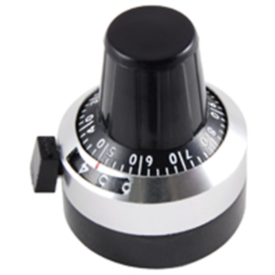 DIAL-7/8 INCH DIAMETER 1/4 INCH SHAFT DIAMETER 10 TURN LOCKING BRAKE SATIN CHROME FINISH W/ BLACK