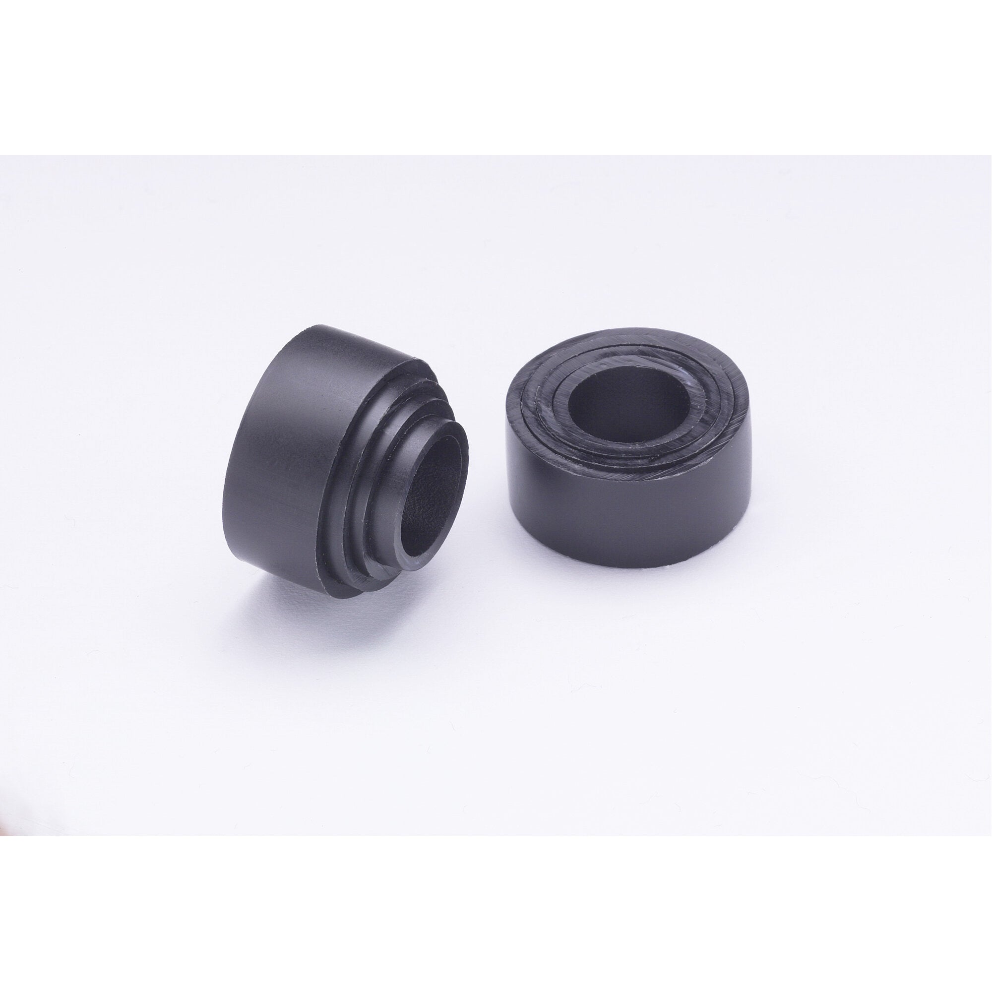 Flange Adapter 5 is a rugged plastic telescoping piece that conveniently adapts a 1 inch wheel core to fit spindles of various diameters (1/2", 5/8", 3/4", or 7/8"). This adapter must be used with a set of flat or cupped washers a minimum of 1/3 the diameter of the wheel for side support.