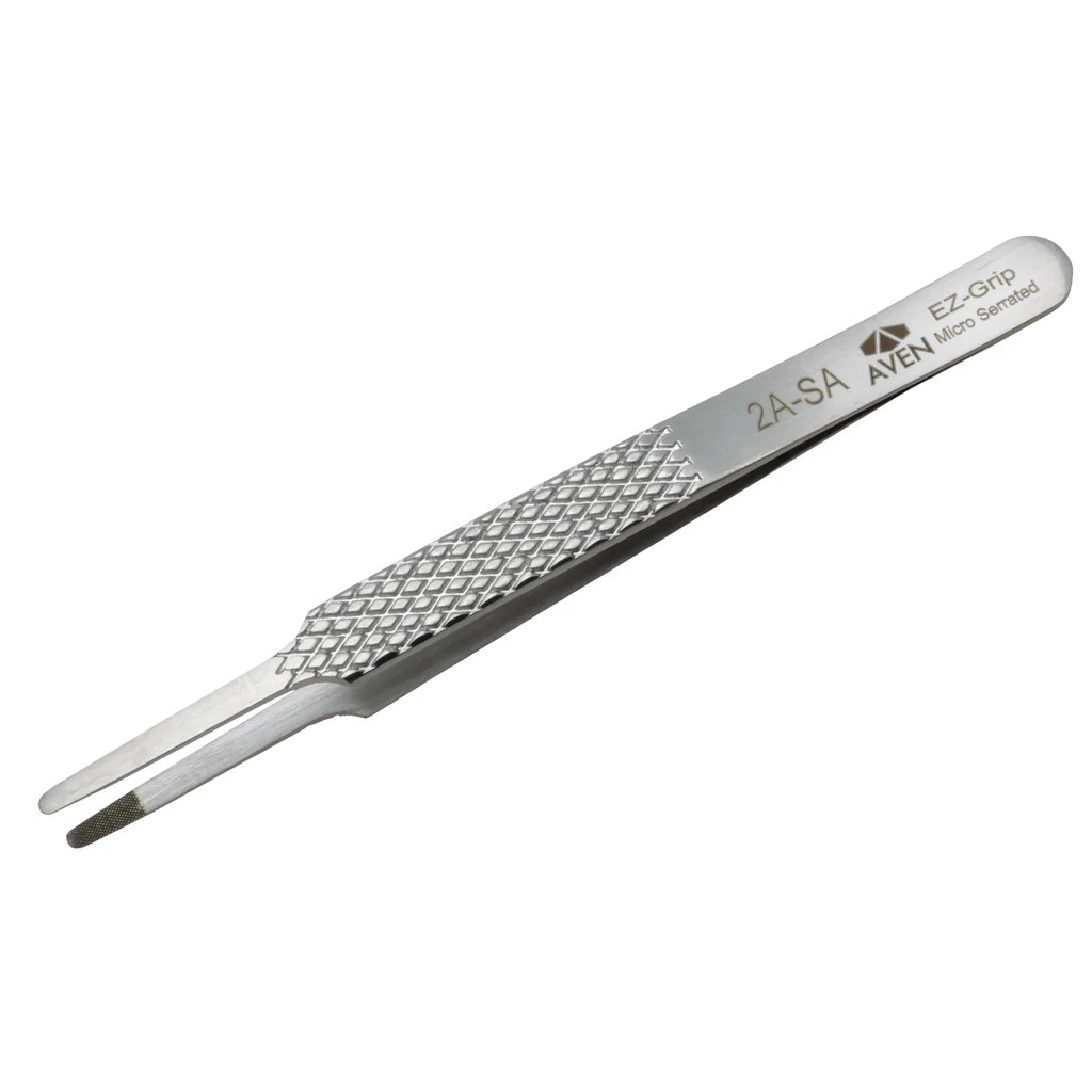 Aven Tools 18049EGS EZ Grip Micro-Serrated Stainless Steel Tweezers, #2A Pattern