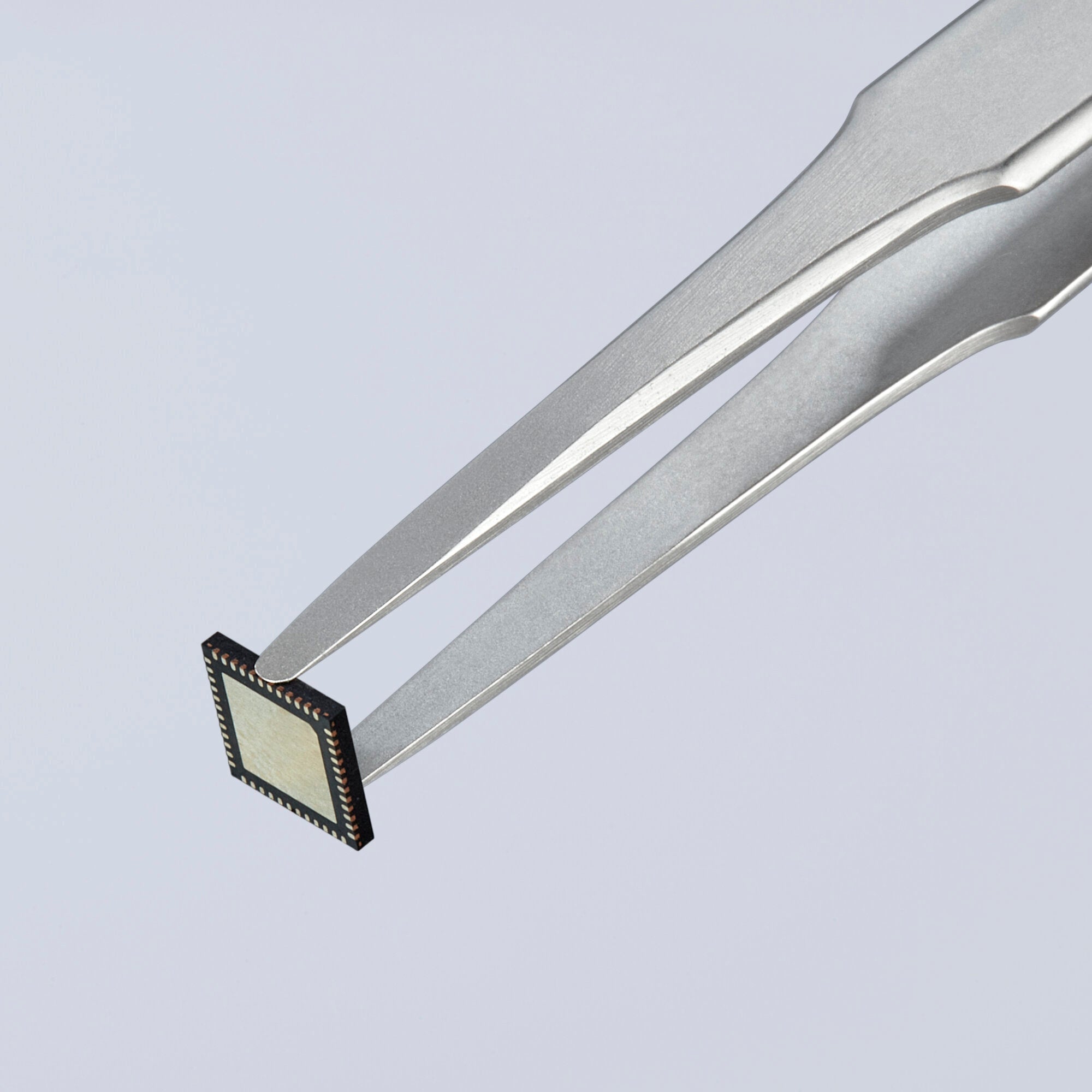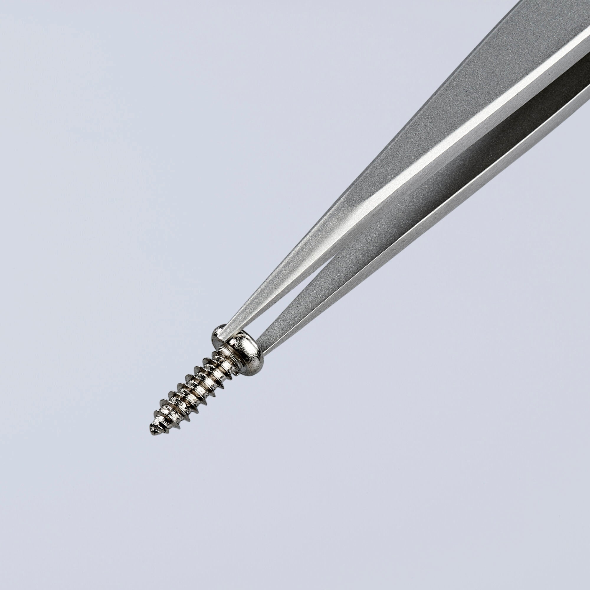 The KNIPEX Premium Stainless Steel Tweezers Set is high-quality tools designed for precision work in a variety of fields, including electronics, jewelry making, and fine crafts. The set features a collection of tweezers made from premium stainless steel, known for its durability and corrosion resistance. With a range of tip styles included, these tweezers provide excellent grip and control, making them a reliable choice for intricate tasks that require precise handling of small objects. Excellent resistance to a wide range of chemicals, salts, and acids. The 80% anti-magnetic feature offers protection, precise handling, versatility, and durability. Smooth gripping surface ensures a secure and gentle grip on objects without causing damage or leaving unwanted marks.. Smooth handles allow for prolonged and precise use. 92 21 01 - Premium Stainless Steel Gripping Tweezers-Pointed Tips. Pointed tips offer precise gripping of fine components. 92 21 02, 92 21 03 and 92 31 01 (Angled) - Premium Stainless Steel Gripping Tweezers-Needle-Point Tips. Needle-point tips offer extra-fine gripping on very small components and wire. 92 51 01 - Premium Stainless Steel Gripping Tweezers-Blunt Tips. Blunt tips offer a firm grip but won't damage surrounding components. Seven compartment tool roll made of hard-wearing polyester fabric.