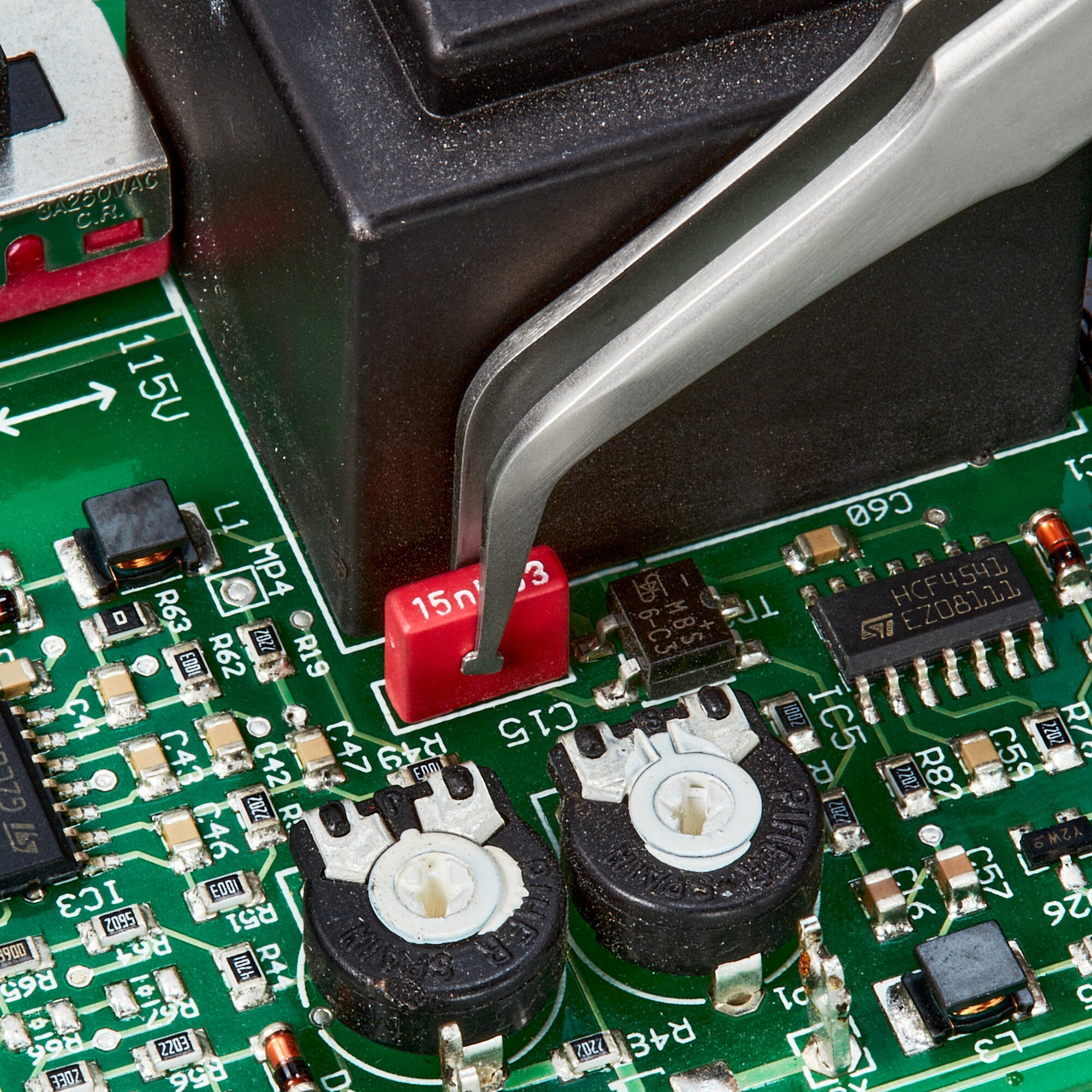Premium stainless steel resists most chemicals, salts and acids. Angled tips make it easier to reach and grasp objects in tight or hard-to-reach spaces. Positioning tips offer exact positioning of components when working on surface mounted devices (SMD). Smooth gripping surface will not mar fine components. Smooth handles minimizes any potential interference with surrounding materials. 80% anti-magnetic design minimizes magnetic interference. High temperature and excellent chemical resistance. SMD (surface mounted device) tweezers position electronic components to be soldered directly onto the circuit board.
