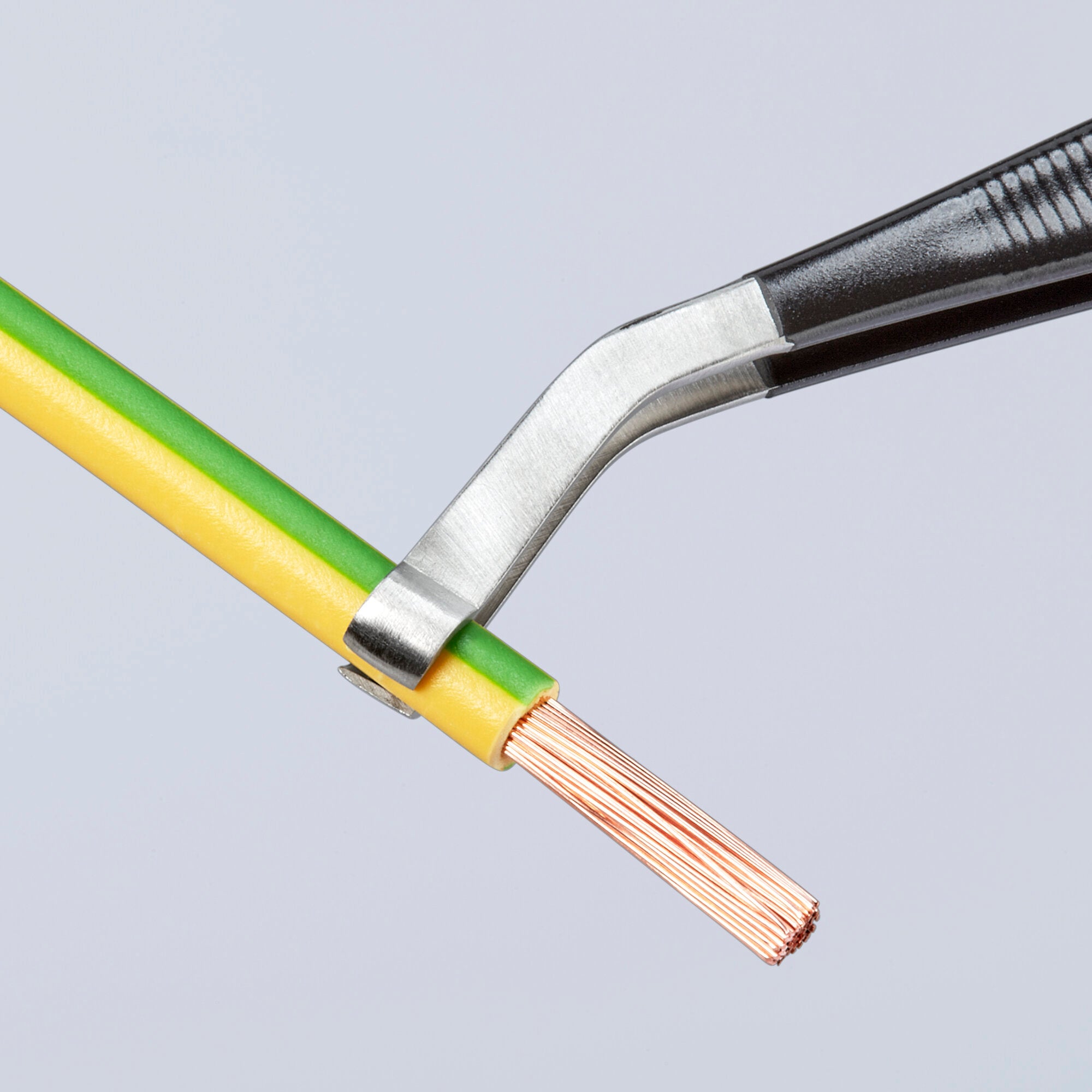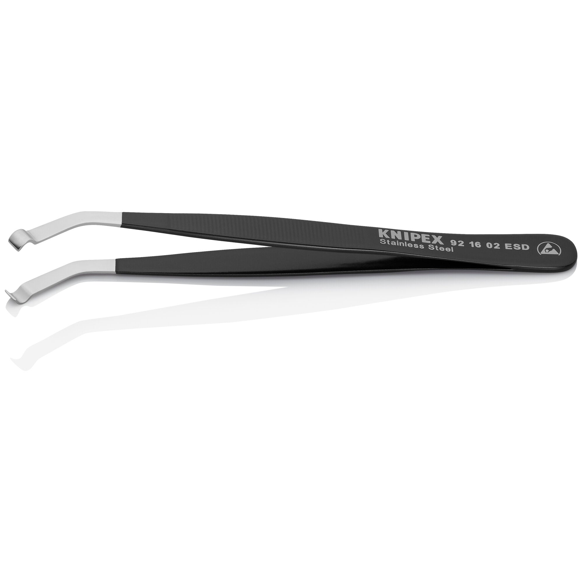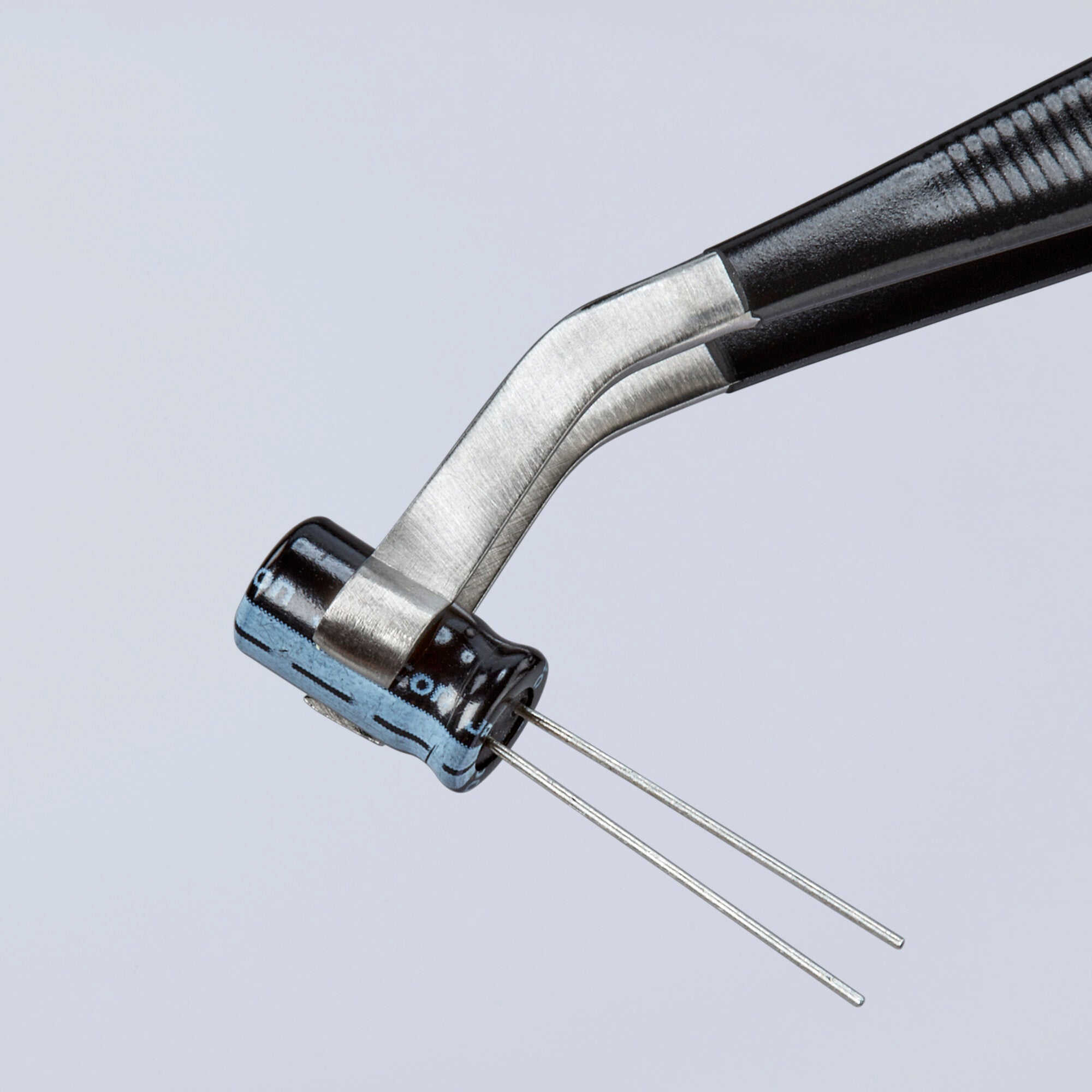 Stainless steel offers corrosion resistance. Angled tips make it easier to reach and grasp objects in tight or hard-to-reach spaces. Positioning tips offer exact positioning of components when working on surface mounted devices (SMD) or through hole technology (THT). Smooth gripping surface will not mar fine components. Serrated handles provide a secure grip for better control and maneuverability. 80% anti-magnetic design minimizes magnetic interference. ESD handles discharge electrostatic energy through the handles in a gradual and controlled manner. For through-hole technology (THT) and pin-in-hole technology (PIH).