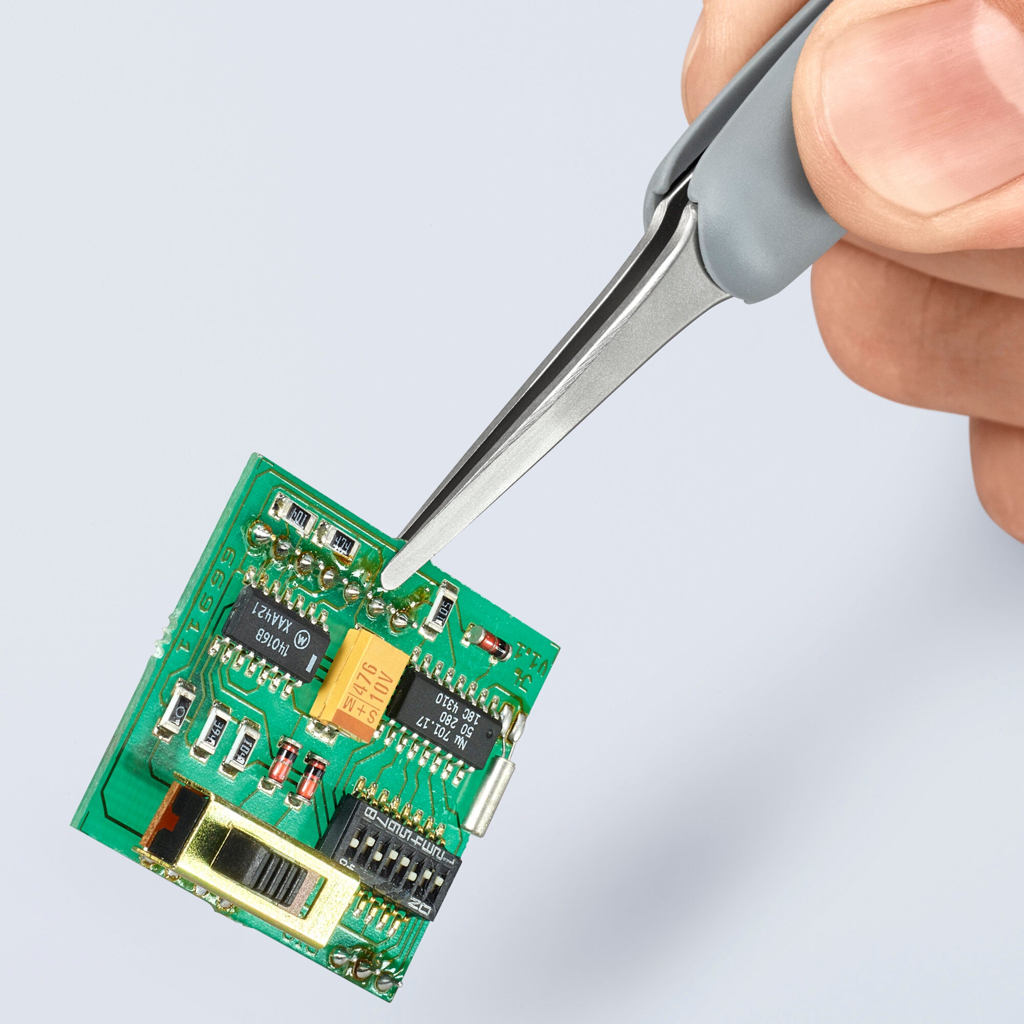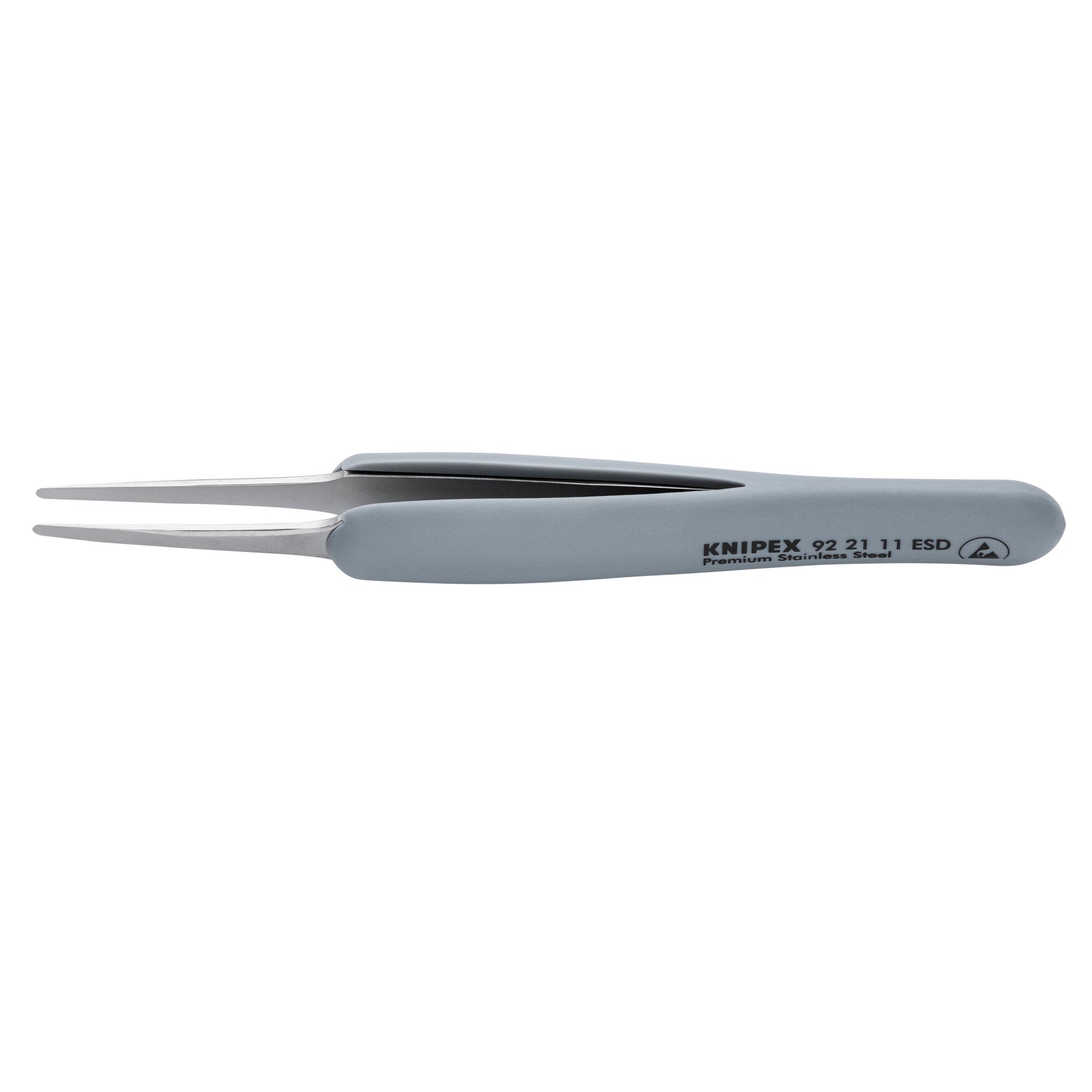 Knipex 92 21 11 ESD 4" Premium Stainless Steel Precision Tweezers-Blunt Tips-ESD Rubber Handles