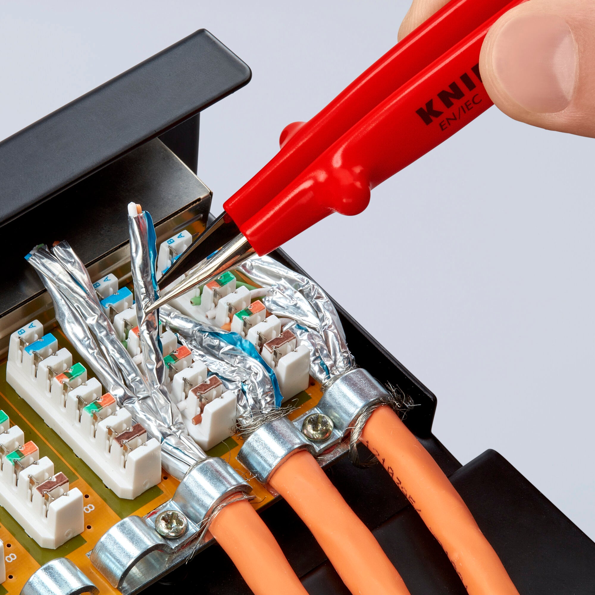 Knipex 92 27 61 5 1/4" Stainless Steel Gripping Tweezers-Pointed Tips-1000V Insulated