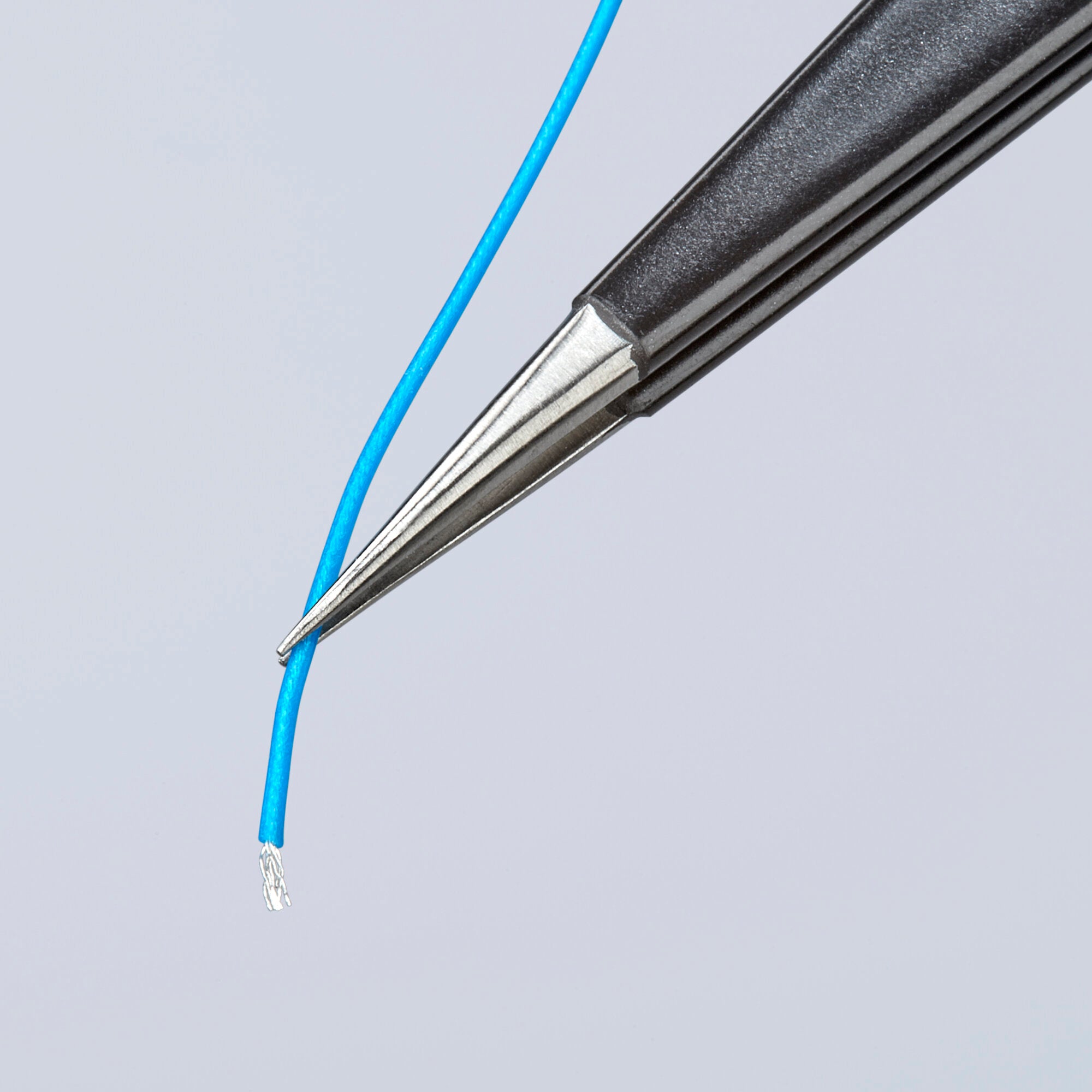 Stainless steel offers corrosion resistance. Straight tips provide excellent precision and control when picking up and handling small objects. Needle-point tips offer extra-fine gripping on very small components and wire. Smooth gripping surface will not mar fine components. Smooth handles minimizes any potential interference with surrounding materials. 80% anti-magnetic design minimizes magnetic interference. ESD handle versions discharge electrostatic energy through the handles in a gradual and controlled manner (Dissipative 104/109 OHM regarding DIN EN 61340-5-1).