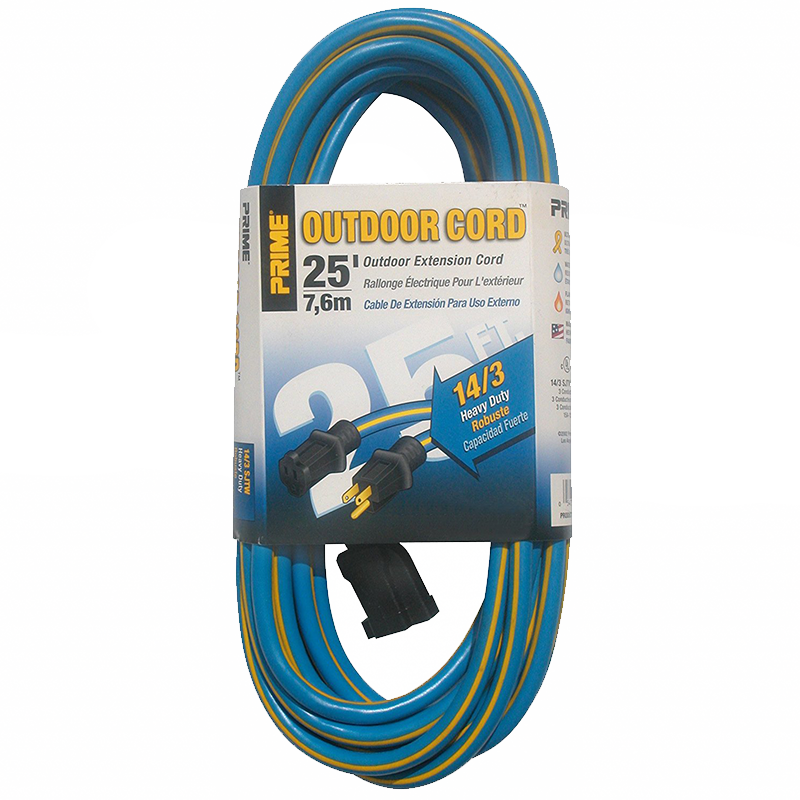 Prime Wire & Cable KC506725 25' 14/3 SJTW Kaleidoscope Heavy Duty Outdoor Extension Cord, Blue and Yellow