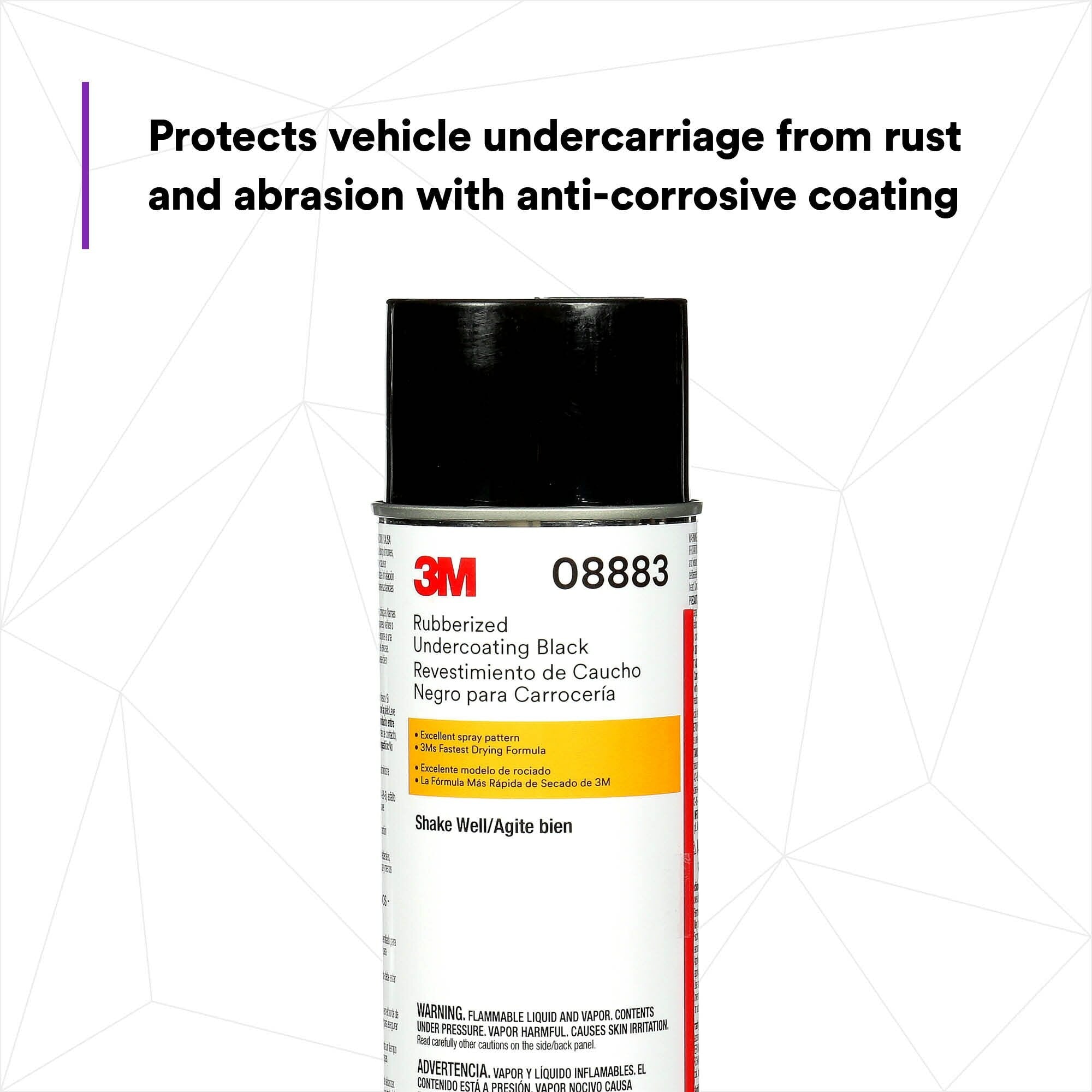 3M Rubberized Undercoating produces a textured finish which resists chipping, abrasion, exterior rusting and weathering. Provides one-coat build-up with no dripping, running or sagging.Excellent corrosion and abrasion resistance