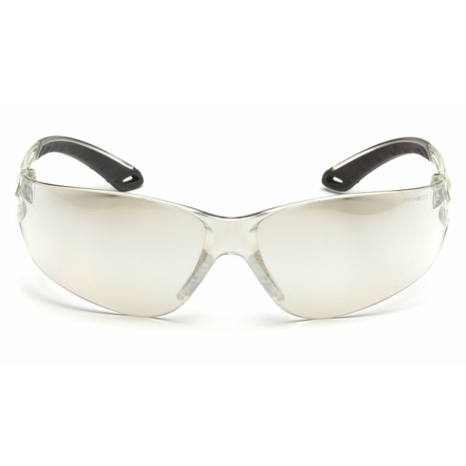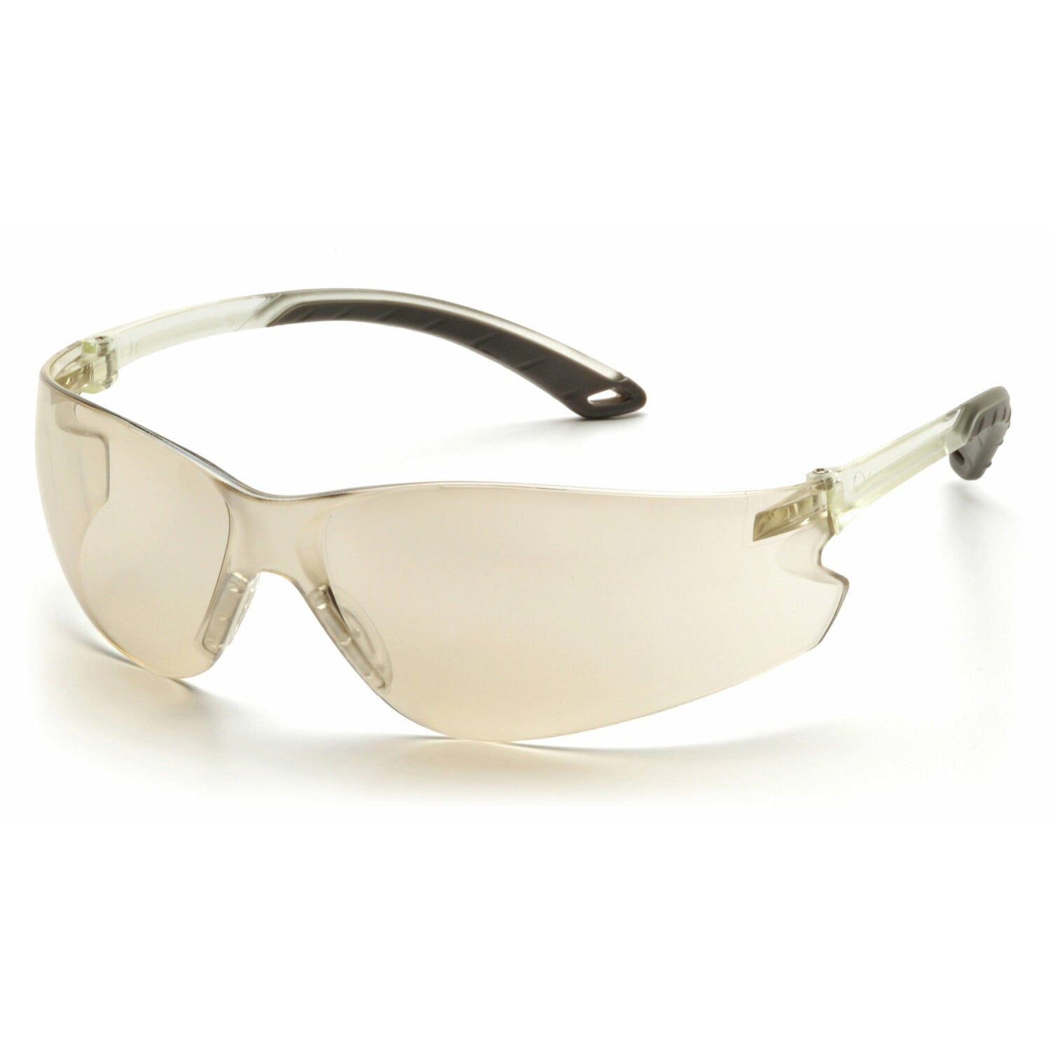 Pyramex - Itek - I/O Mirror Frame/Indoor/Outdoor Mirror Lens - Ventilated nosepiece allows heat to dissipate from nose bridge to reduce fogging. Soft dual injected rubber temple tips and flexible nosepiece provide non-slip comfort. 9.75 base curve lens provides excellent side protection against airborne particles. Lightweight, frameless protection is ideal for all-day wear. Lenses provide 99% protection against harmful UV rays.