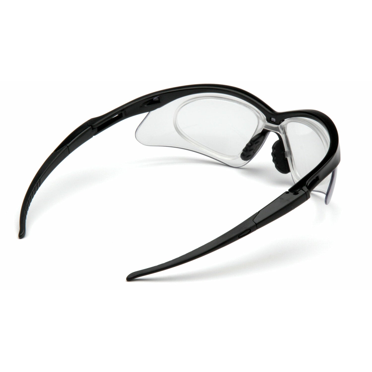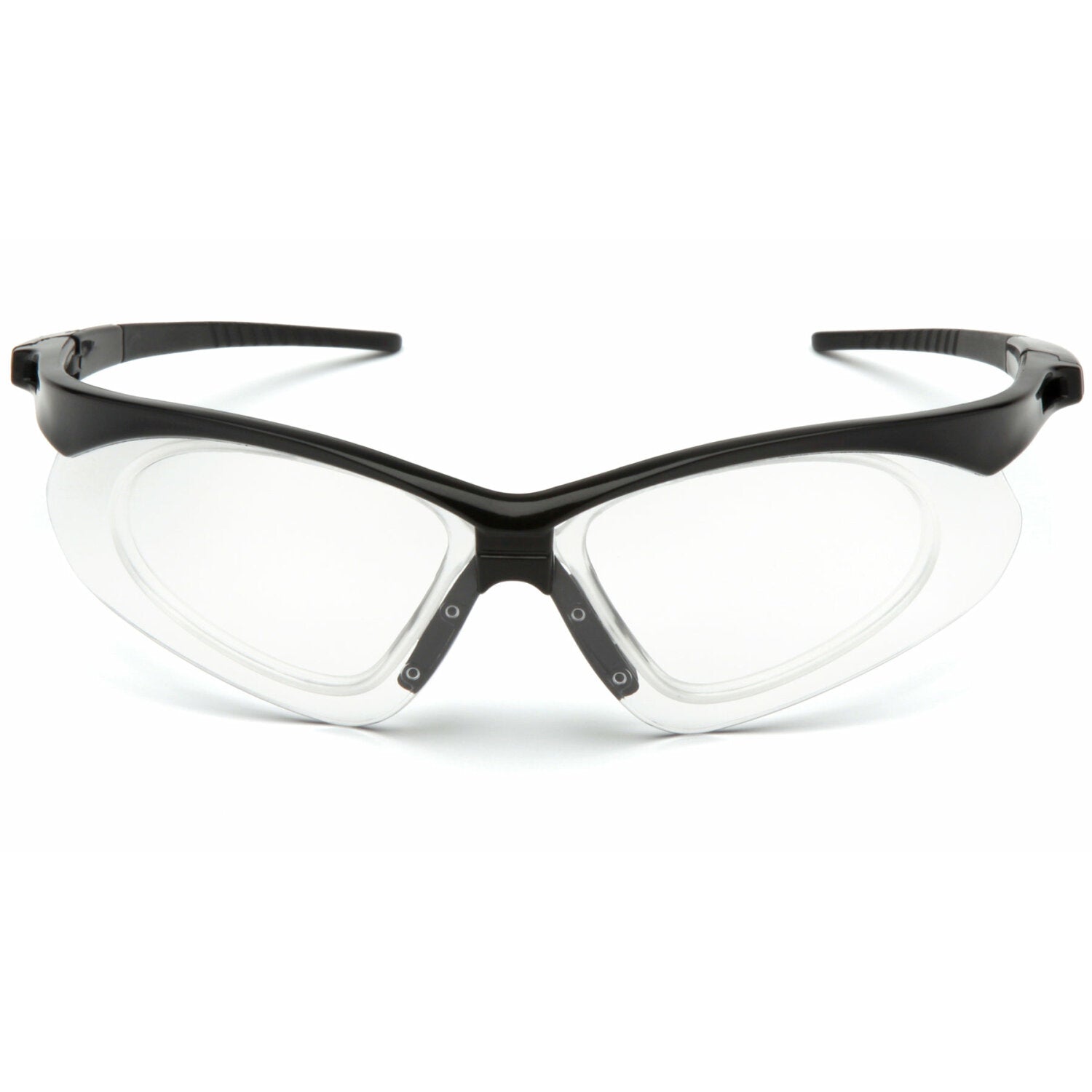 Pyramex - PMXTREME - Black Frame/ Clear anti-fog lens with RX insert - Built-in rubber nose piece. Rubber temple tips. Ventilated, straight-back temples. Includes RX insert which accomodates -3.0 to +3.0 prescription lenses. Includes black lanyard cord.