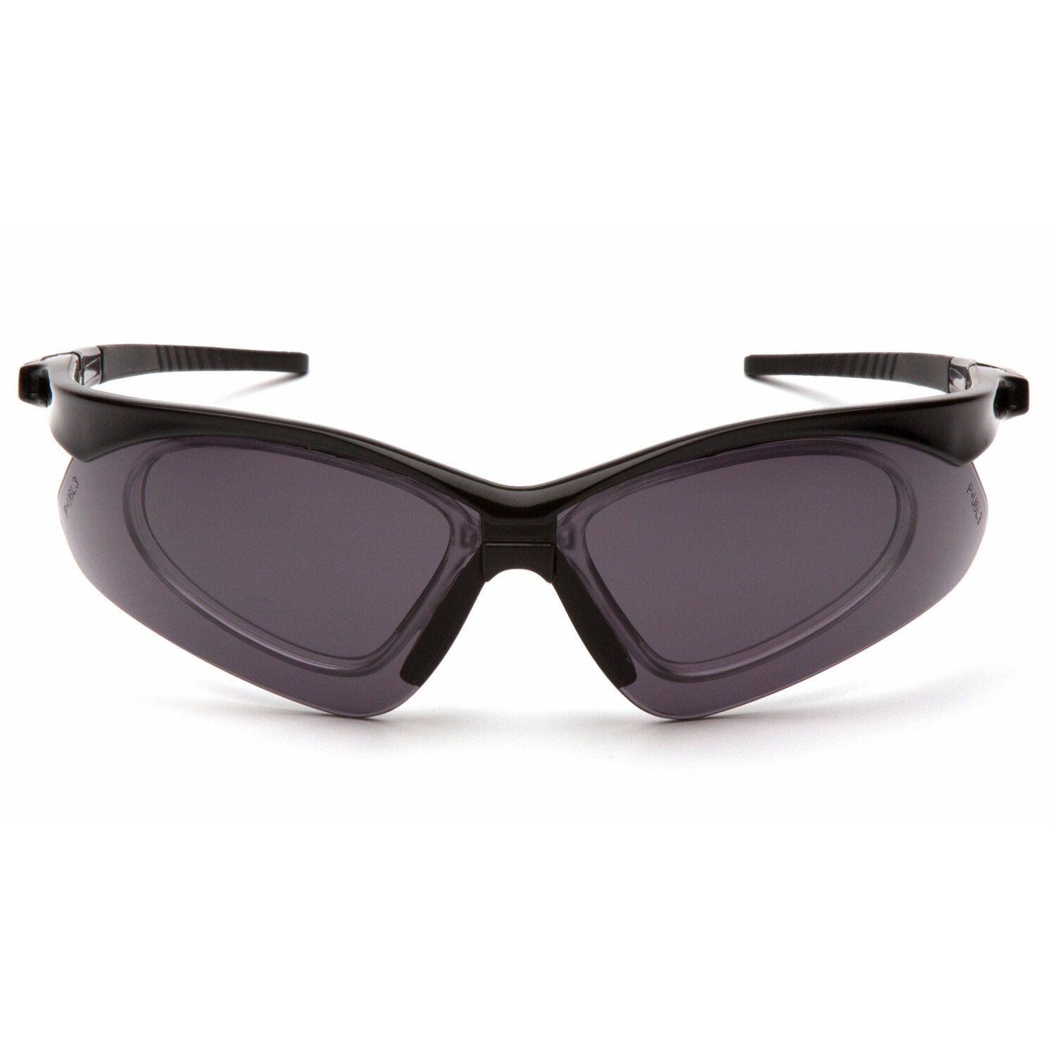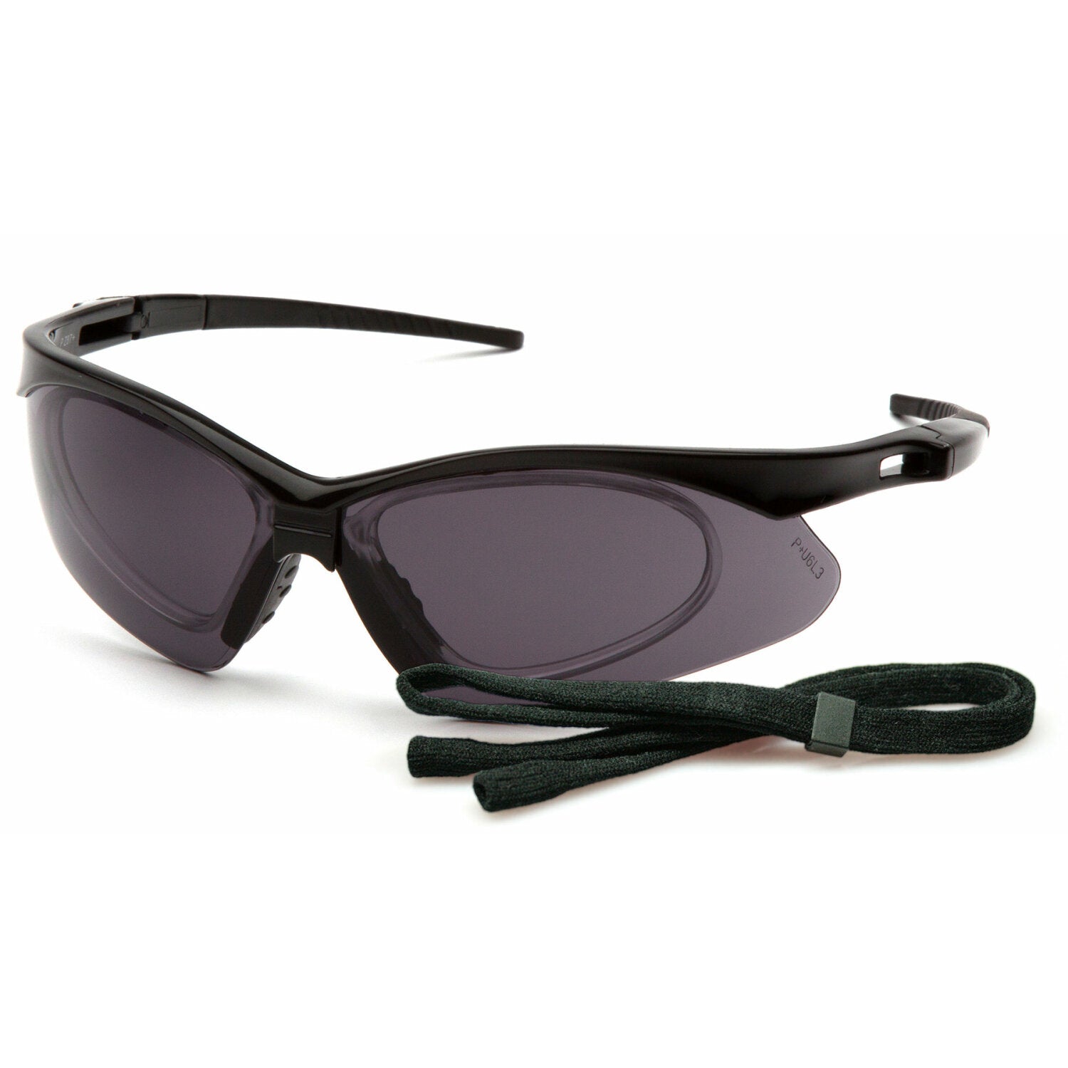 Pyramex - PMXTREME - Black Frame/ Gray anti-fog lens with RX insert - Built-in rubber nose piece. Rubber temple tips. Ventilated, straight-back temples. Includes RX insert which accomodates -3.0 to +3.0 prescription lenses. Includes black lanyard cord.