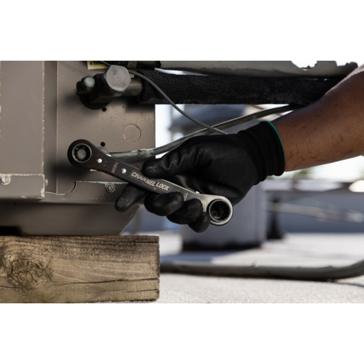 RATCHETING DOUBLE BOX END design allows each wrench to drive 2 fastener sizes per wrench end, 4 sizes in 1 wrench